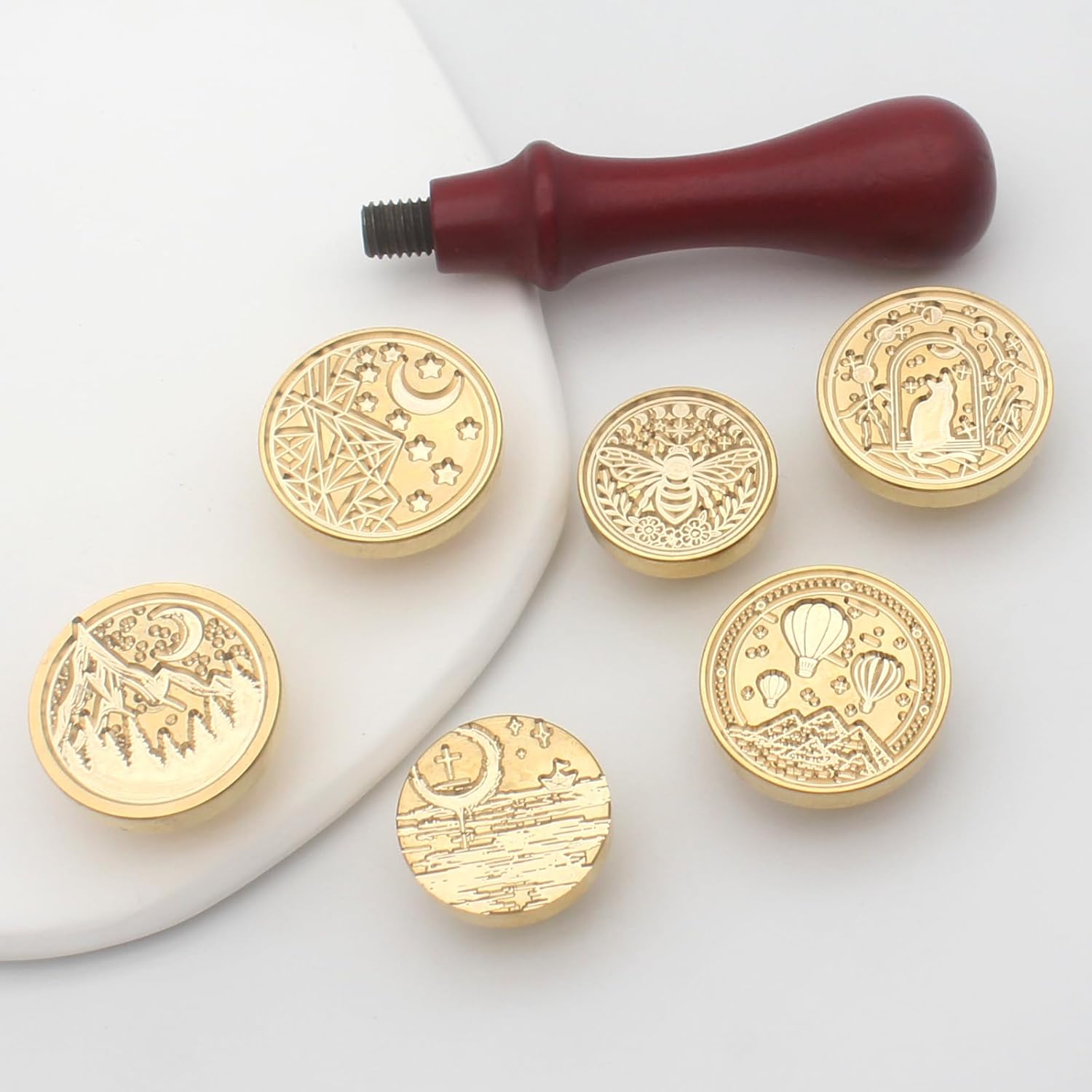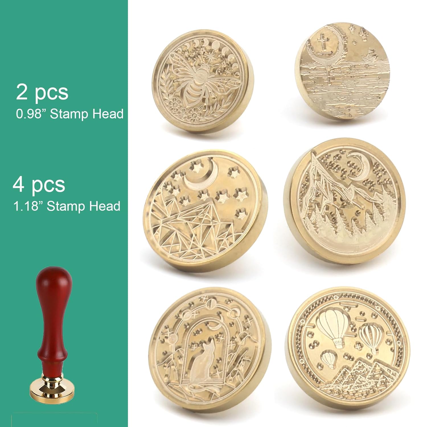 - Nature-Inspired Designs: Our wax seal stamp set features 6 exquisite brass stamp heads, each showcasing a unique blend of stars, moon, and natural elements. From the enchanting combination of stars and sea to the captivating fusion of stars and mountains, and the whimsical pairing of moon and bees, moon and forest, and stars and cats, this collection captures the beauty and wonder of nature