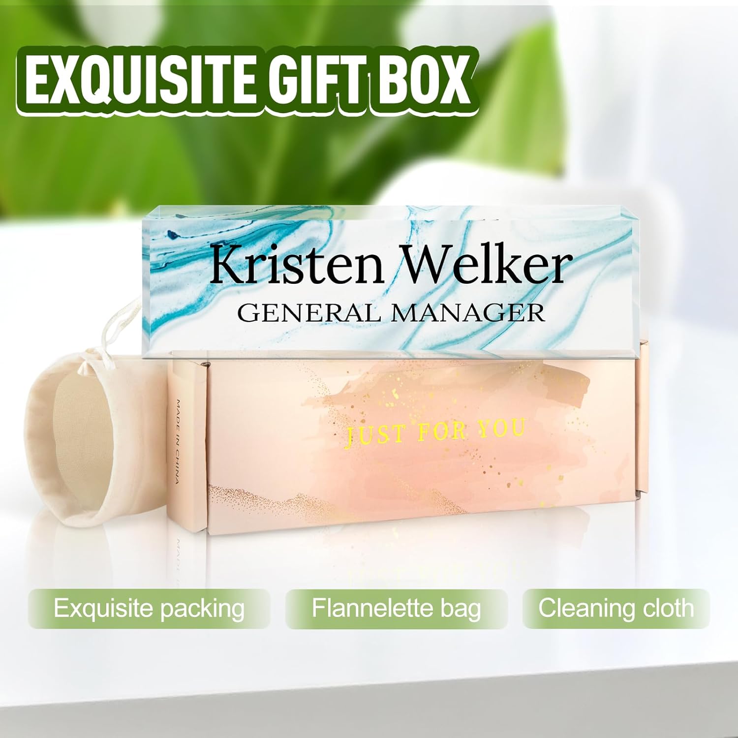 Gowellly Desk Name Plate Personalized - Custom Acrylic Name Plate for Desk - Enterprise Custom Logo/Text nameplates - Employee Appreciation Gifts (White Blue Marble)