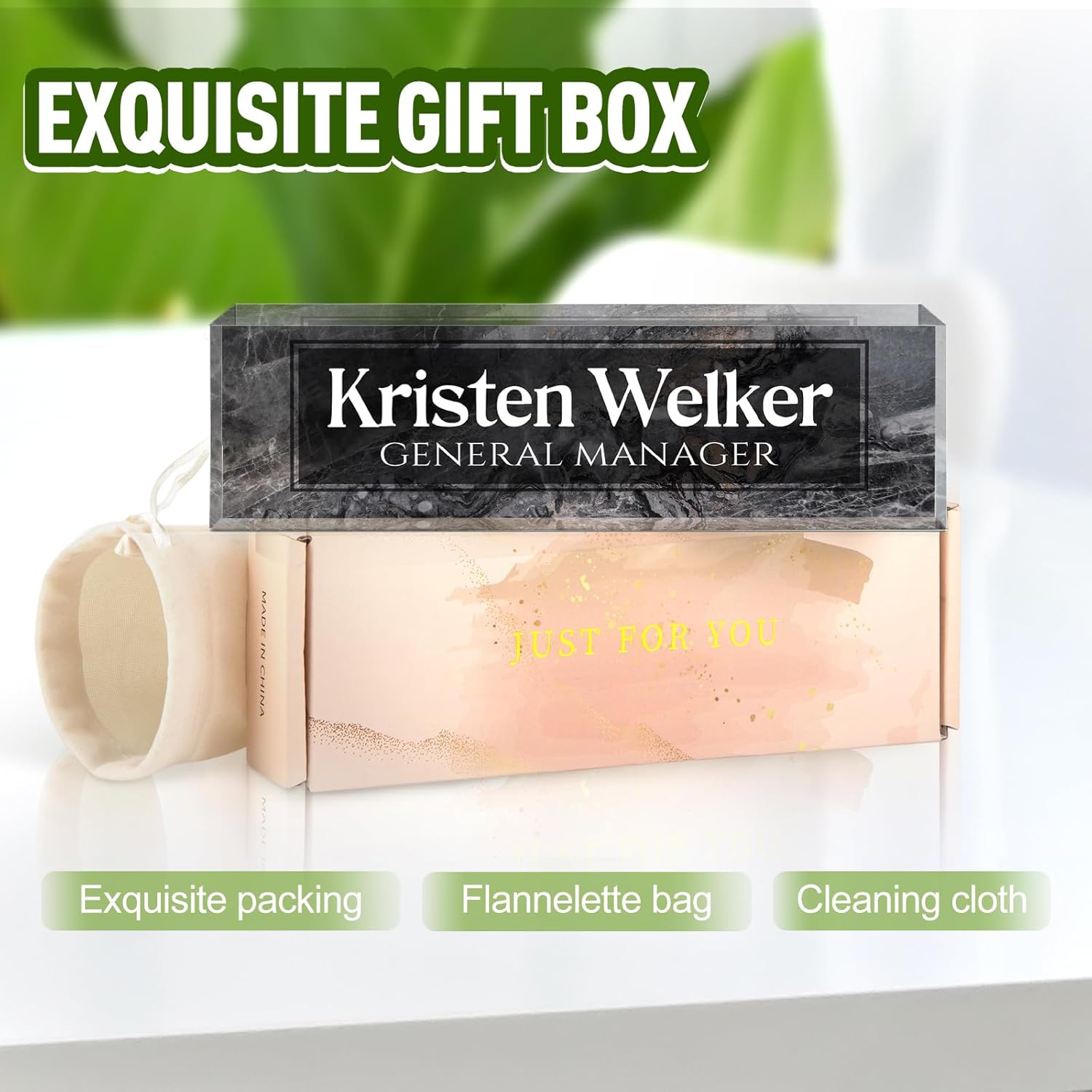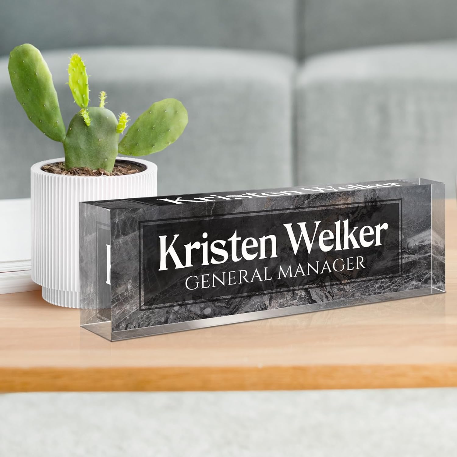 Gowellly Desk Name Plate Personalized - Custom Acrylic Name Plate for Desk - Enterprise Custom Logo/Text nameplates - Employee Appreciation Gifts (Ink Black)