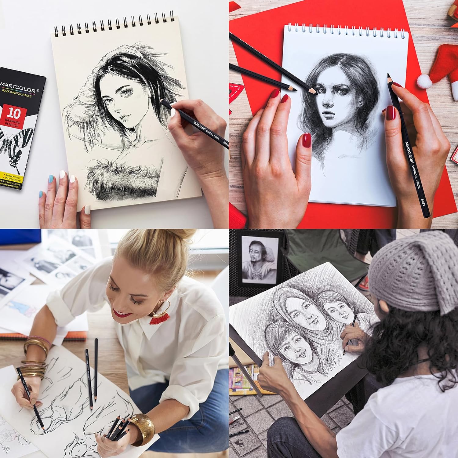 - PERFECT CHARCOAL DRAWING SET - Charcoal Drawing Kit including 10 pcs charcoal pencils, available in five different grades (2 pcs Super Soft, 2 pcs Ex-Soft, 2 pcs Soft, 2 pcs Medium, 2 pcs Hard). Great for sketching, drawing, shading and blending.