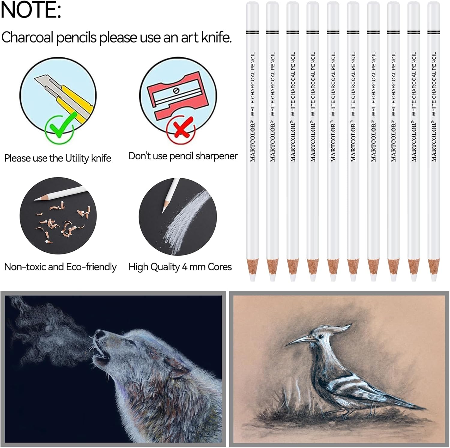 - ENDLESS POSSIBILITIES - These white charcoal pencil lead core diameter is 4mm. May be used alone or to add highlights to black charcoal sketches. Detailed work or quick sketches; White Charcoal pencils great for artists adults teens kid beginner.