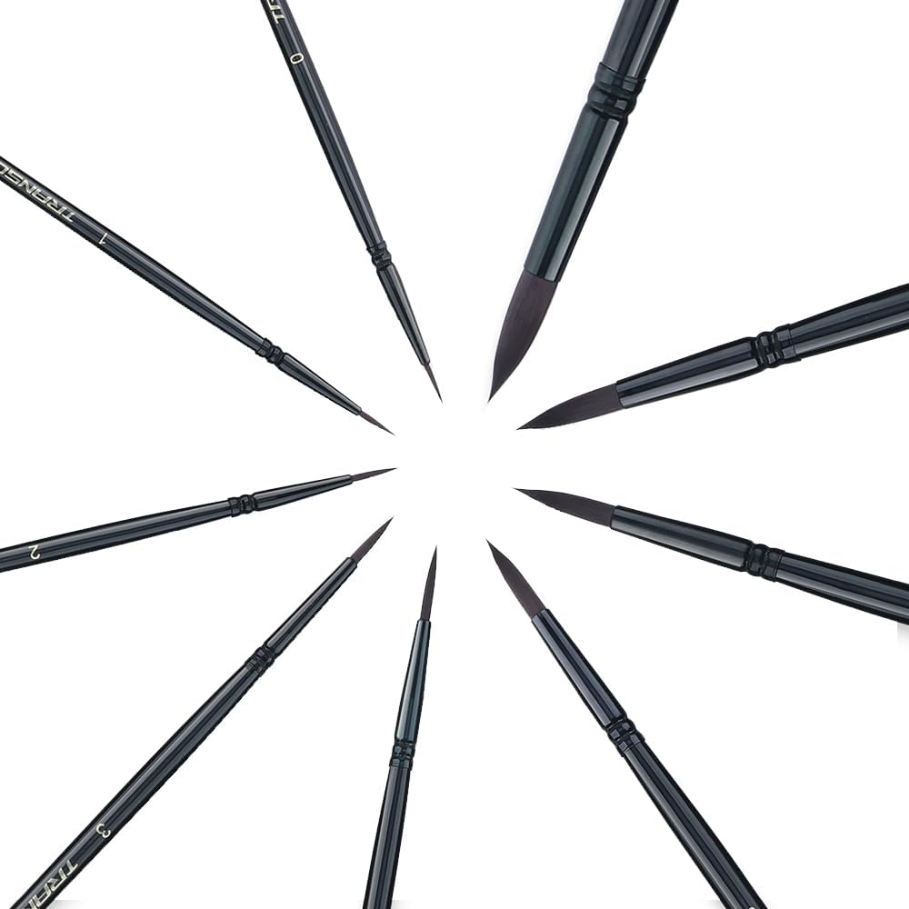 - A basic and versatile round brush set with 9 Popular sizes: 0, 1, 2, 3, 4, 8, 9, 10, 12. From detail liners to round tips. This round brush set covers all your basic painting need.