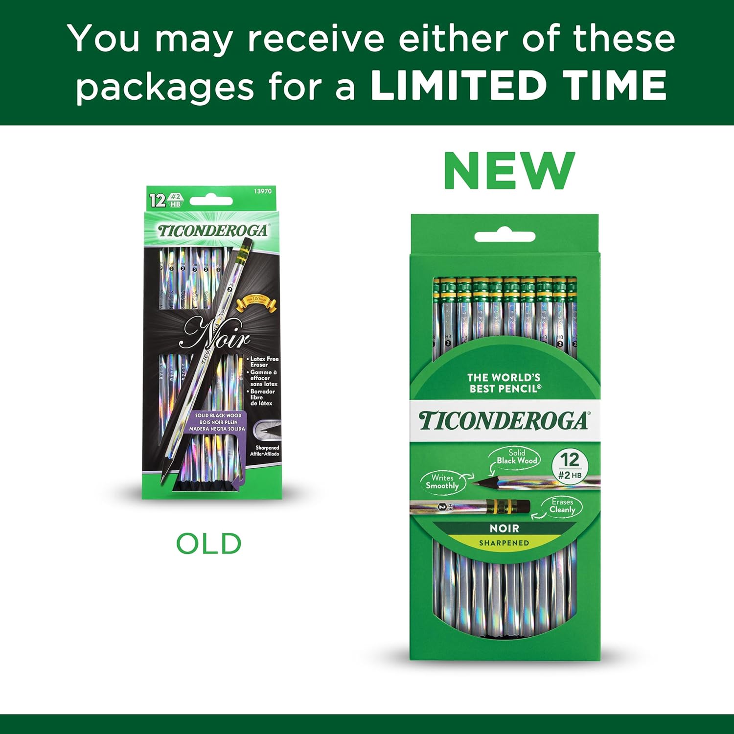 Ticonderoga Noir Wood-Cased Pencils, Pre-Sharpened, #2 HB, Holographic (Pack of 6, 72 Count Total)