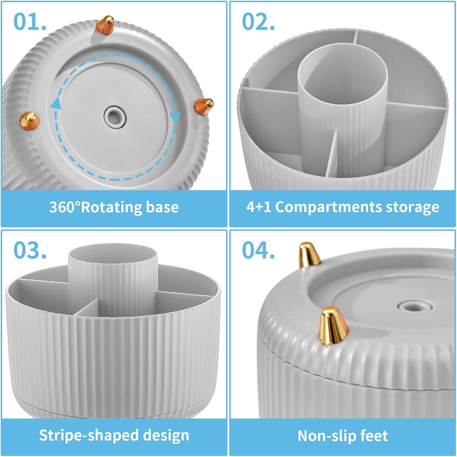 Marbrasse Desk Organizer, 360-Degree Rotating Pen Holder, Desk Organizers and Accessories with 5 Compartments Pencil Holder, Art Supply Storage Box Caddy for Office, Home (Grey)