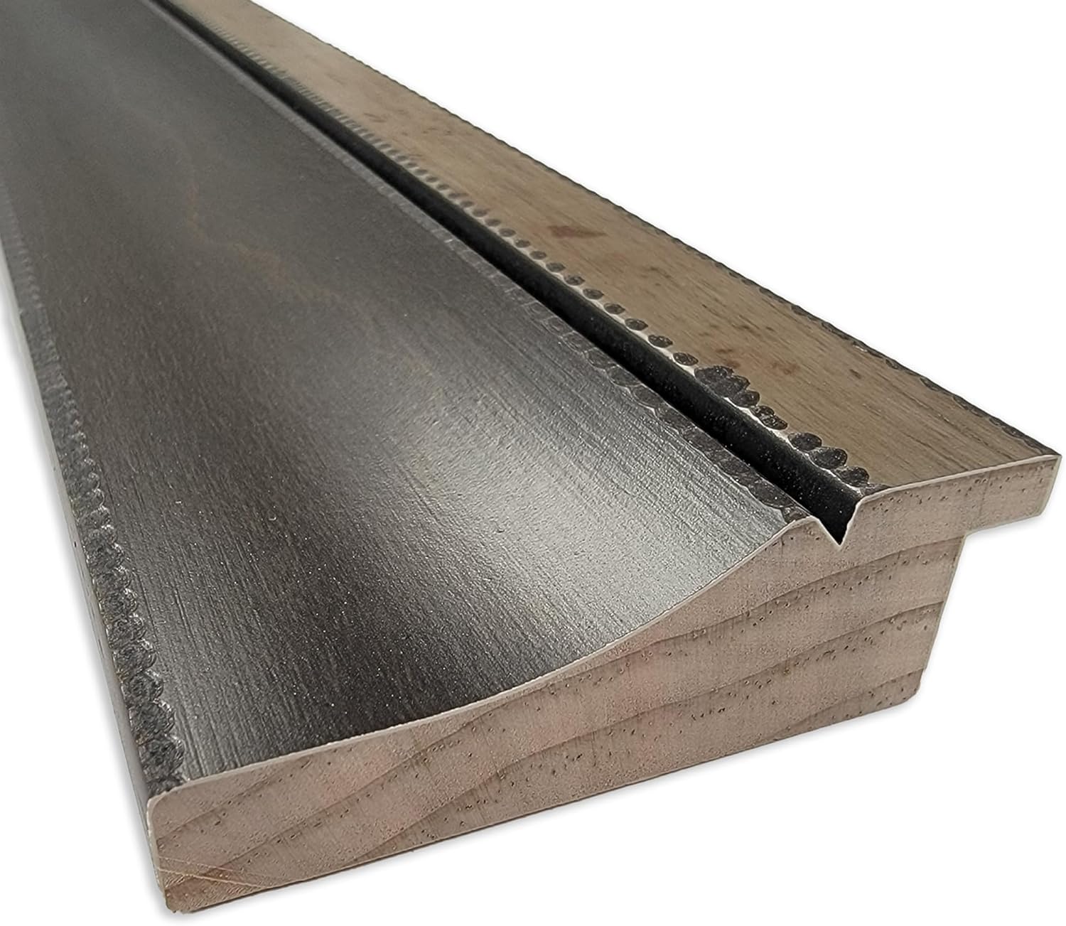 - 100% REAL WOOD FRAME DETAILS: The Hammered Charcoal Tan Frame is a satin finish charcoal black frame with a woodgrain tan inner lip and stippled dark marks along each edge that are similar to the pattern of a hammer tap. The frame is 2.75 in. wide and stands 0.75 in. off the wall.