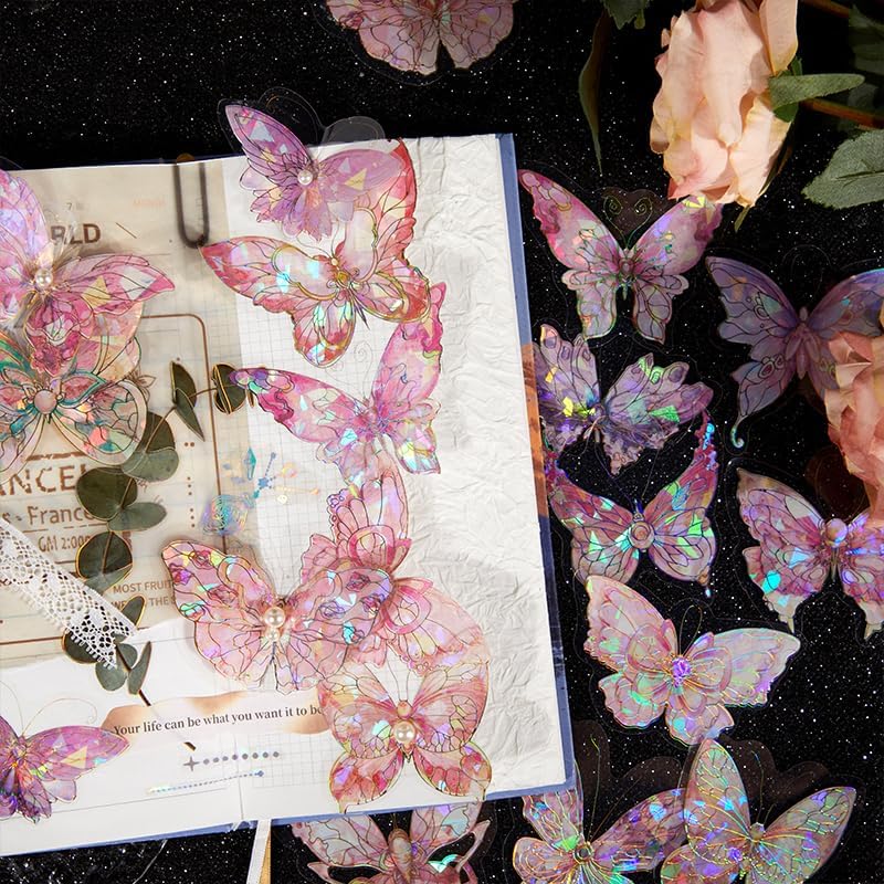 Alideco 120pcs Scrapbook Stickers Shell Light Butterfly PET Waterproof Scrapbooking Junk Journal Crafts Embelishment Decoration Diary Stickers (beikeguanghudie)