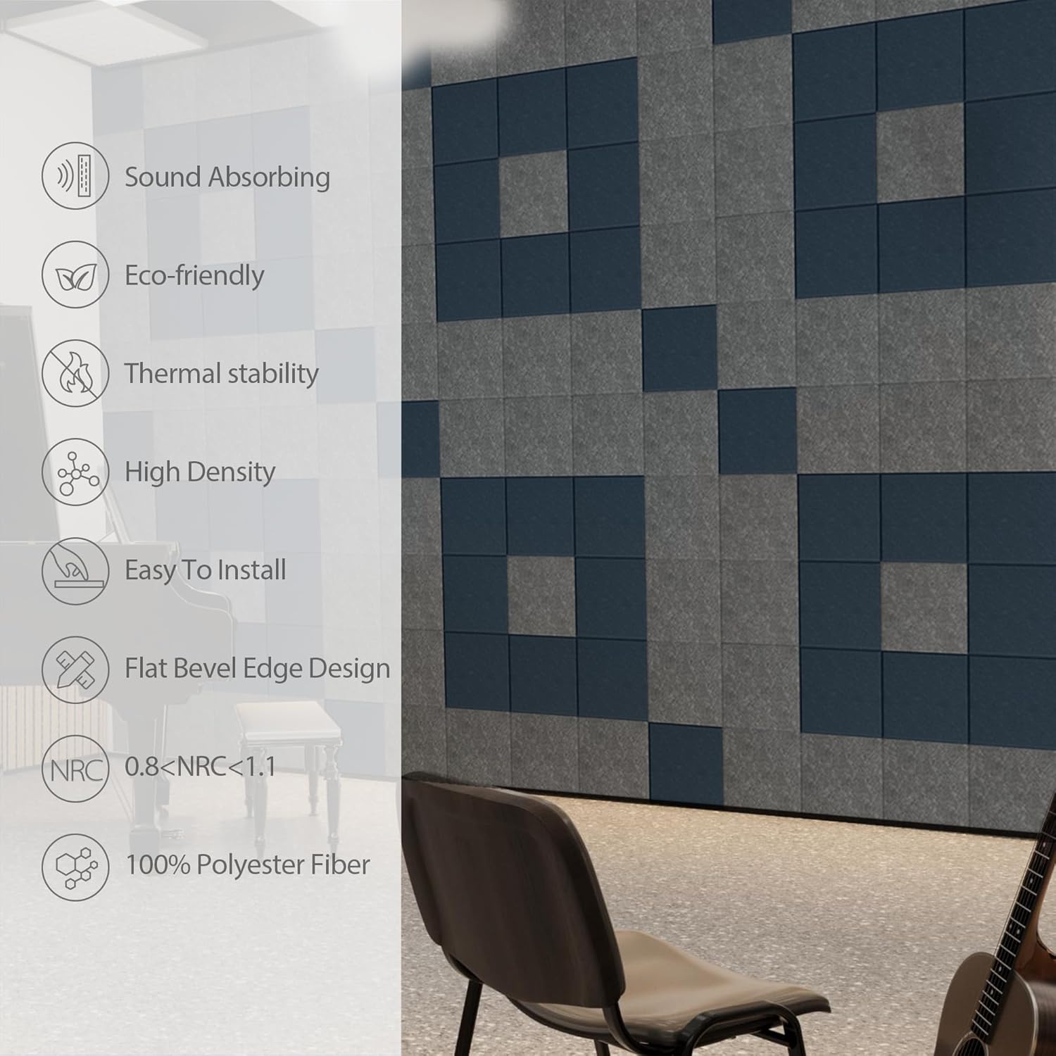 - 【HIGH-DENSITY ENVIRONMENTAL PROTECTION & DURABLE MATERIAL】Made of 100% polyester fiber material, the overall sound-absorbing panel is odorless, non-toxic, formaldehyde-free. Paying attention to customer safety is the fundamental criterion of Amantech
