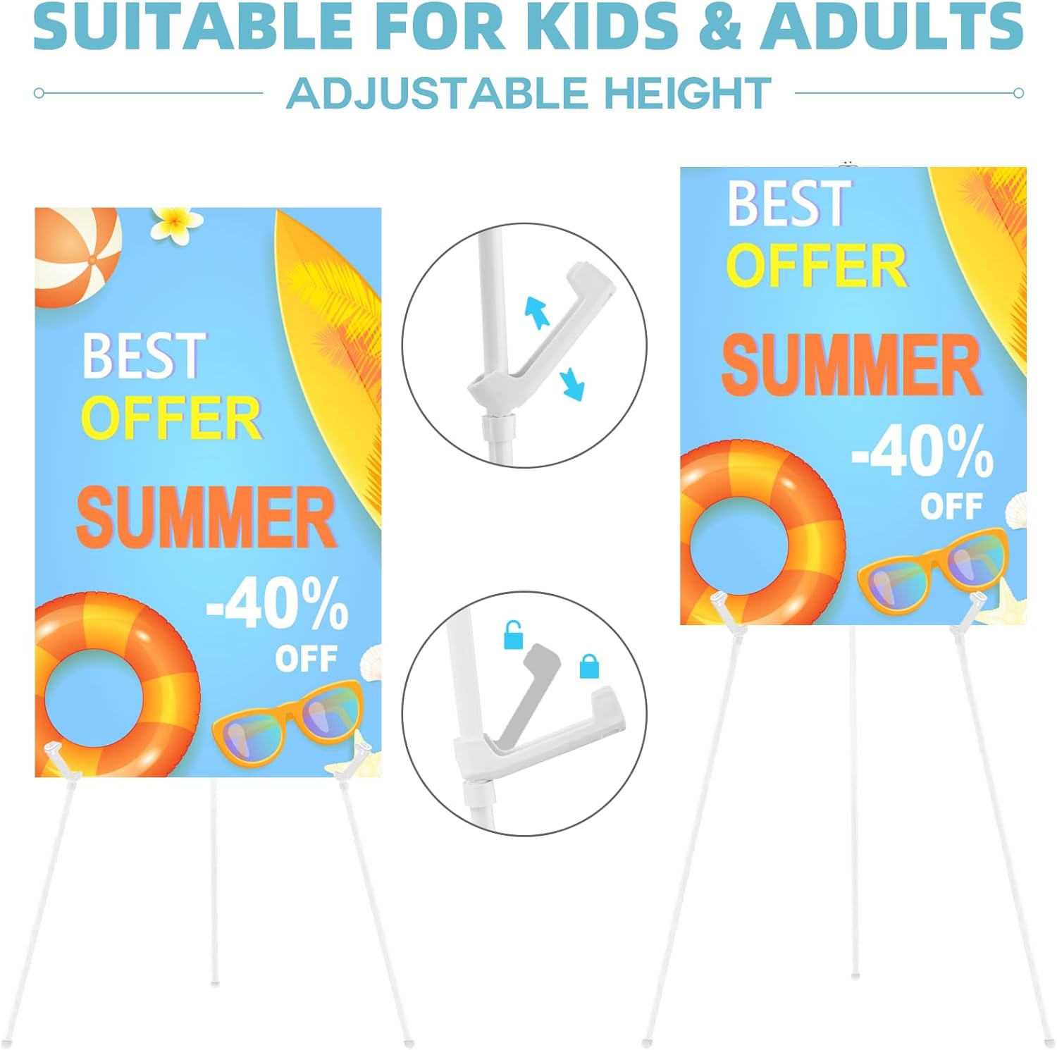 - MULTIPLE USES: The easels for display can be used to arrange art exhibitions, wedding banquets, party welcome board and store entrances. It is suitable for posters and wedding signs of various sizes