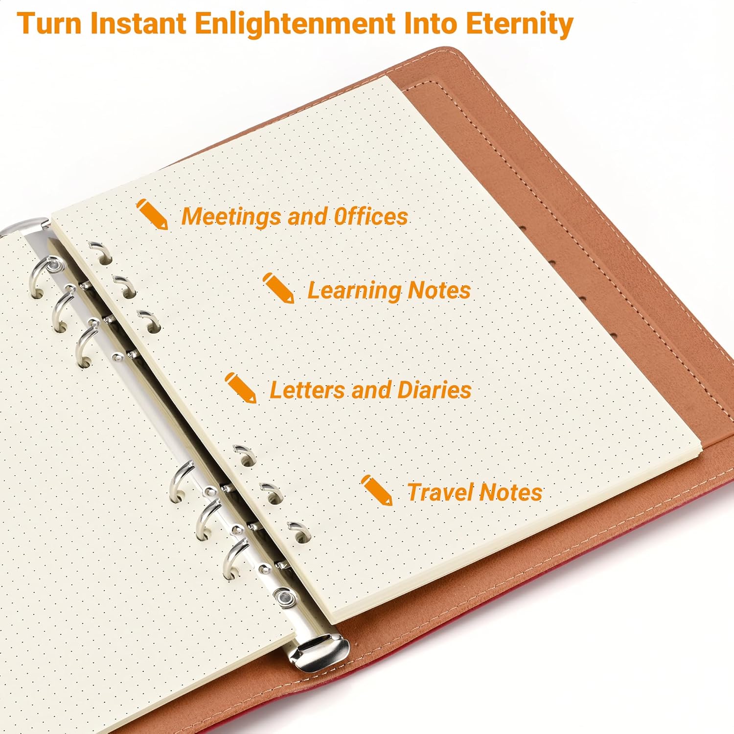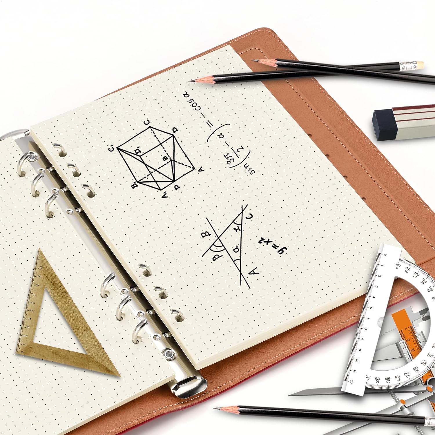 A5 Dot-Ruled Refill Paper, 100gsm Thick Beige No-Bleed Sheets (80-Pack), Pre-Punched – Fits A5 6-Ring Binders for Office, School & Teachers