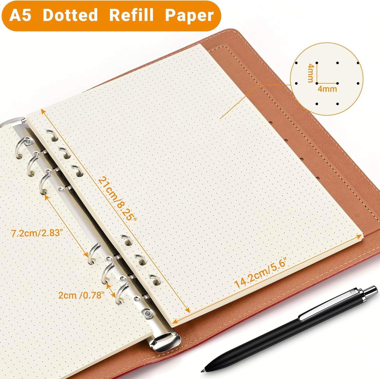 A5 Dot-Ruled Refill Paper, 100gsm Thick Beige No-Bleed Sheets (2 Packs, 80 Sheets Each), Pre-Punched – Fits A5 6-Ring Binders for Office, School & Teachers