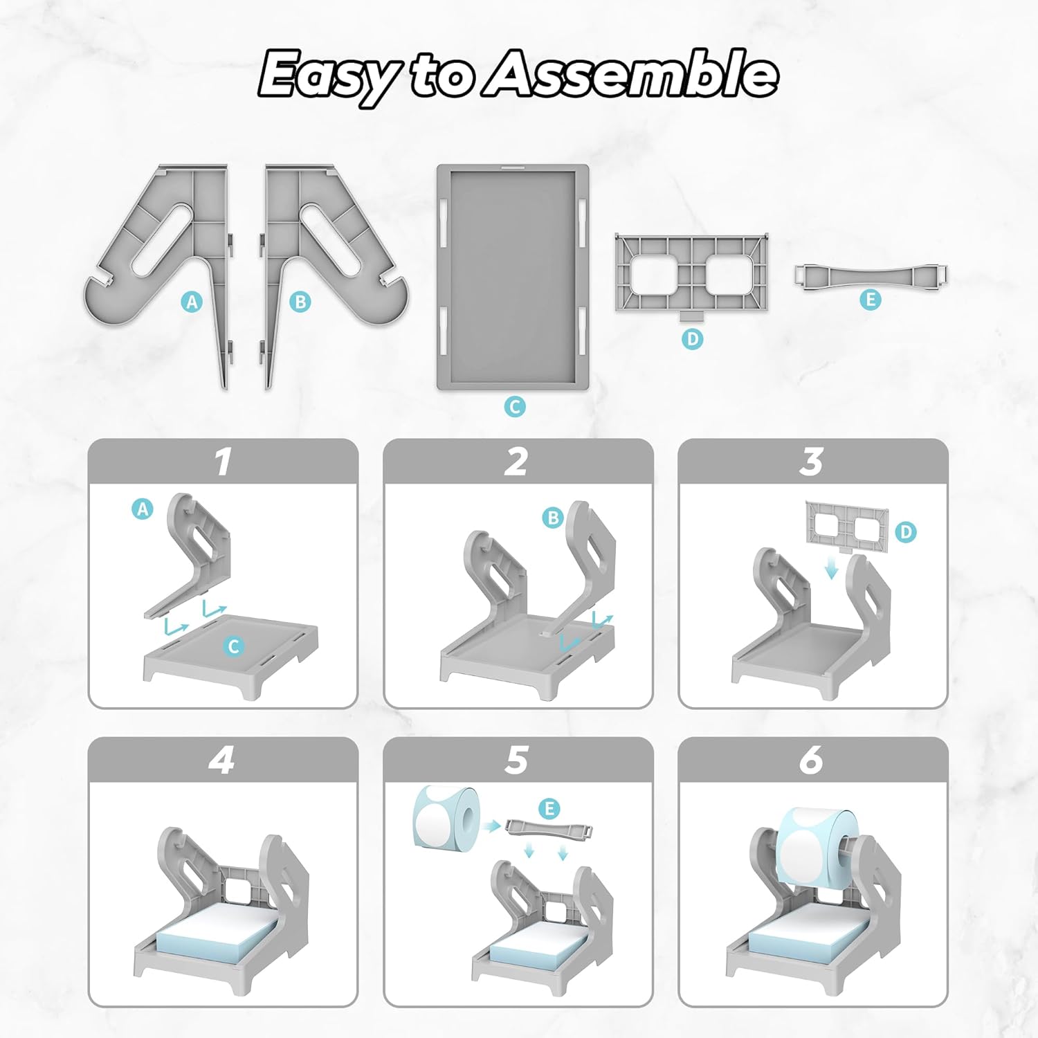 PONNOR Label Holder for Rolls and Fanfold Labels Shipping Labels Stand Desktop Thermal Printer DIY Accessory Business Supplies for Home, Office(Grey)