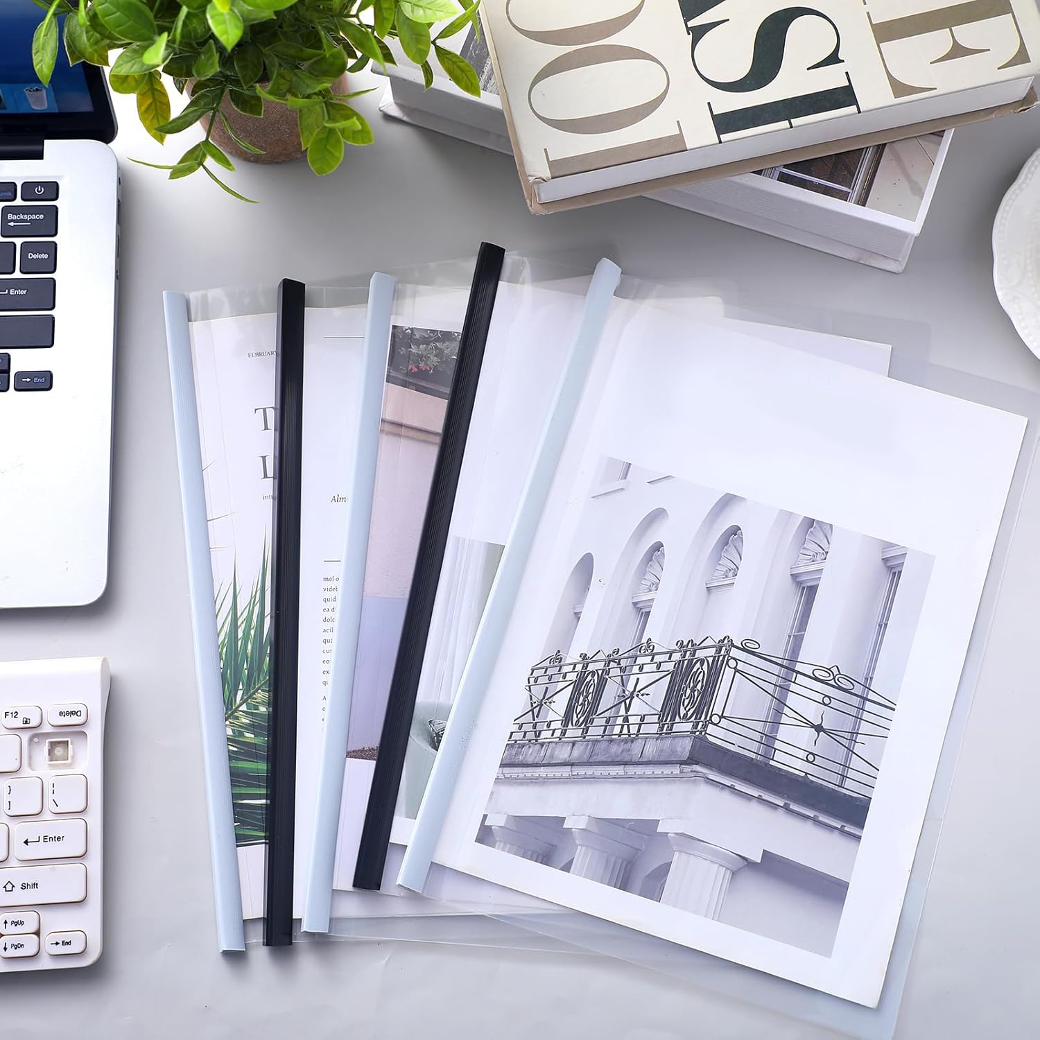 - 30-Sheet Capacity: the clear report covers can hold approximately 30 sheets of paper; The sliding bars have a width of 1 cm/ 0.39 inches, ensuring that they won't easily slide off the clear report cover; The classic black sliding bar adds a professional touch to the overall appearance.
