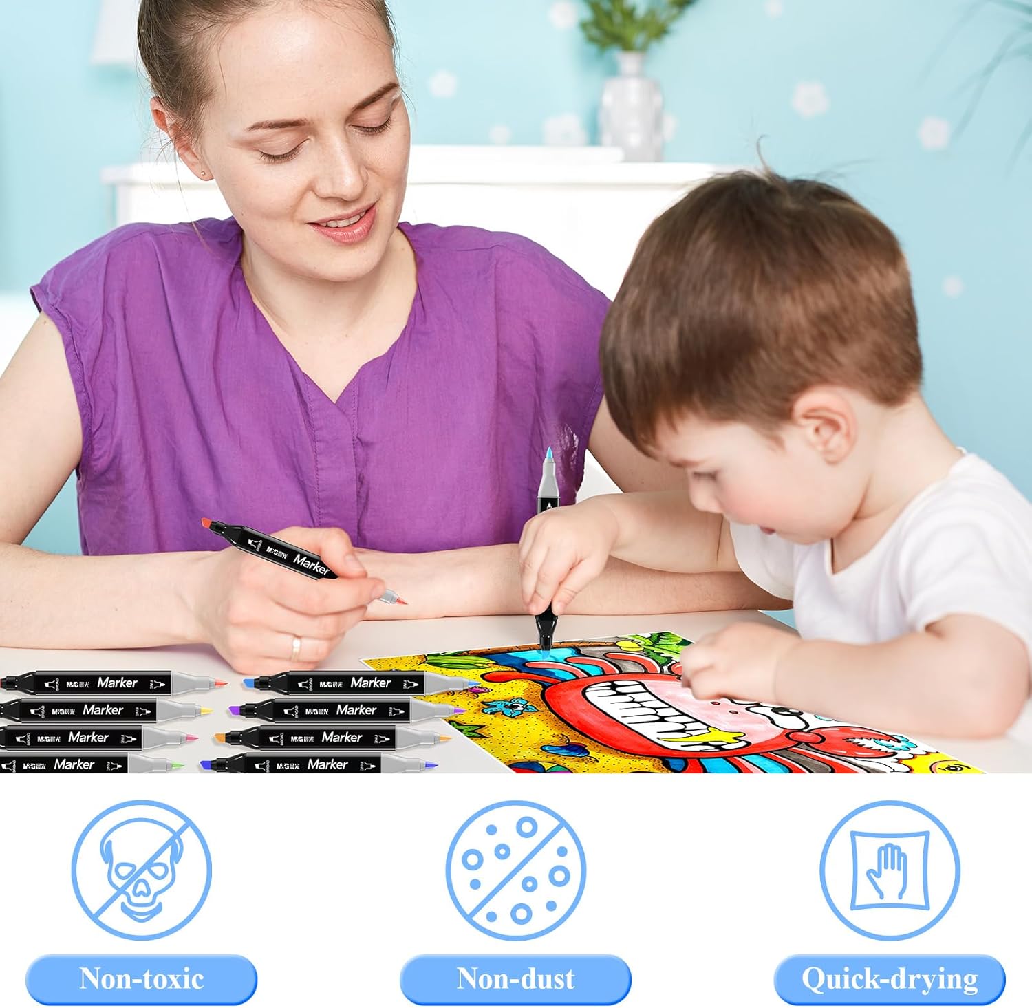 - Dual Tip Design: Each marker features a dual tip, allowing you to switch between a fine tip for detailed lines and a broad tip for filling in larger areas. This versatility makes them perfect for a variety of projects, including coloring books, drawing, and painting.