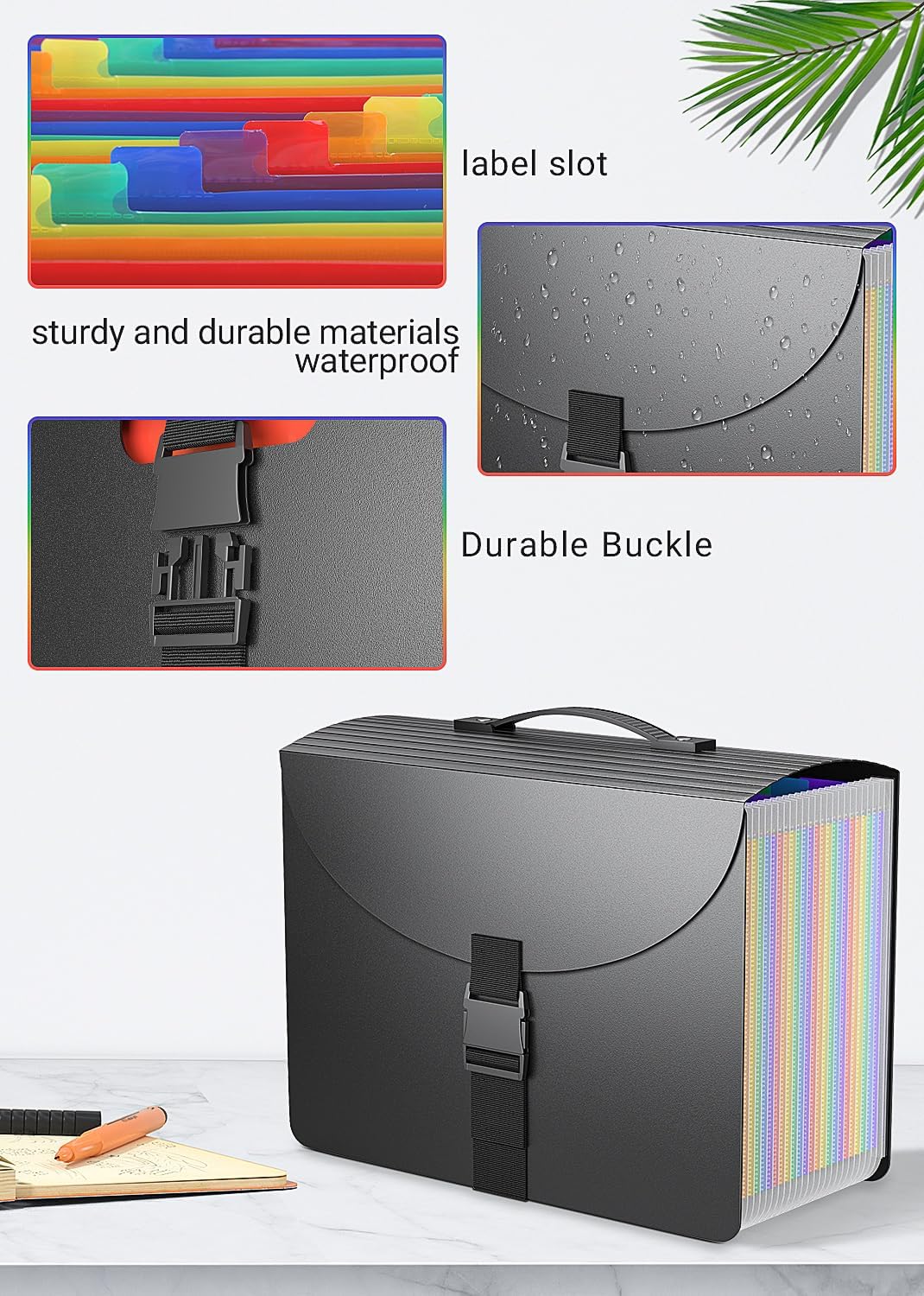 - ✔【HIGH CLASS】 Durable Plastic Handle, the lid is connected to the bottom by a beautiful adjustable buckle,make the folder instantly looks more fashion,when you hold a good amount of documents into file folders,easily take away all important documents anywhere and the buckle is perfect to protect the safety of files,successfully upgraded from traditional accordion file organizer.
