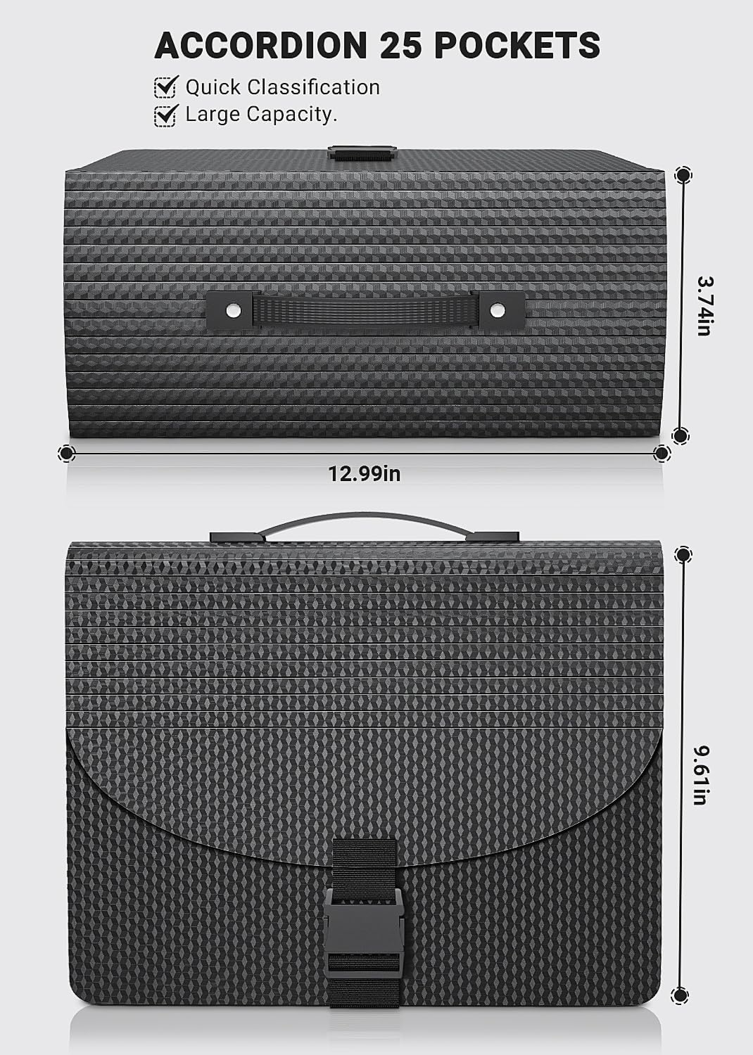 - ✔【UPGRADED】This innovative file organizer,designed with a durable plastic handle and a fashion buckle, successfully upgraded from traditional expanding file folders. More easily take all important documents away to any time and anywhere when hold a good amount of documents, the buckle is very good to protect the safety of files.
