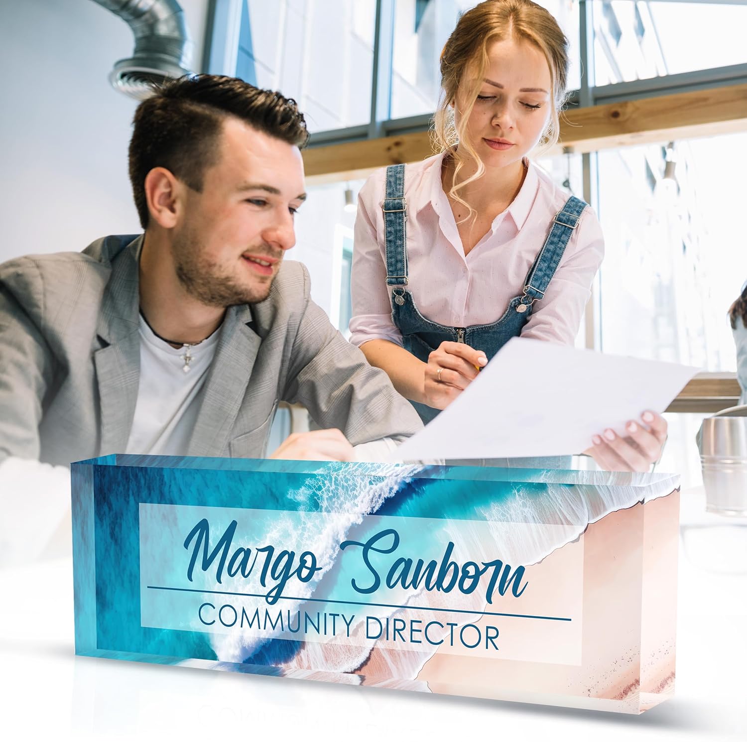 Custom Name Plate for Desk, Desk Name Plate Personalized Office Desk Decor for Women and Men, Employee Appreciation Gifts Office Gifts for Boss, Manager, Teacher, Nurse (Beach Walk)