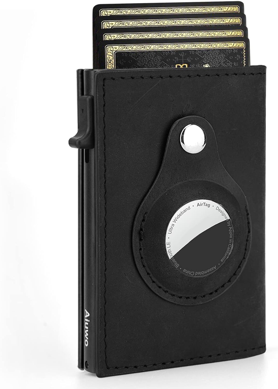 Aiuwo Airtag Wallet for Men,Mens Wallet Card Holder,Smart,Slim,Minimalist Wallet,Credit Cards Holder RFID Blocking Wallet (Airtag Wallet, Crazy Horse Black)
