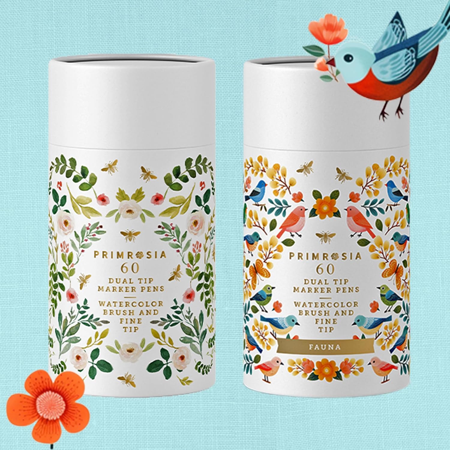 Primrosia Flora and Fauna 60 Dual Tip Markers for Bullet Journal Pens Coloring and Drawing