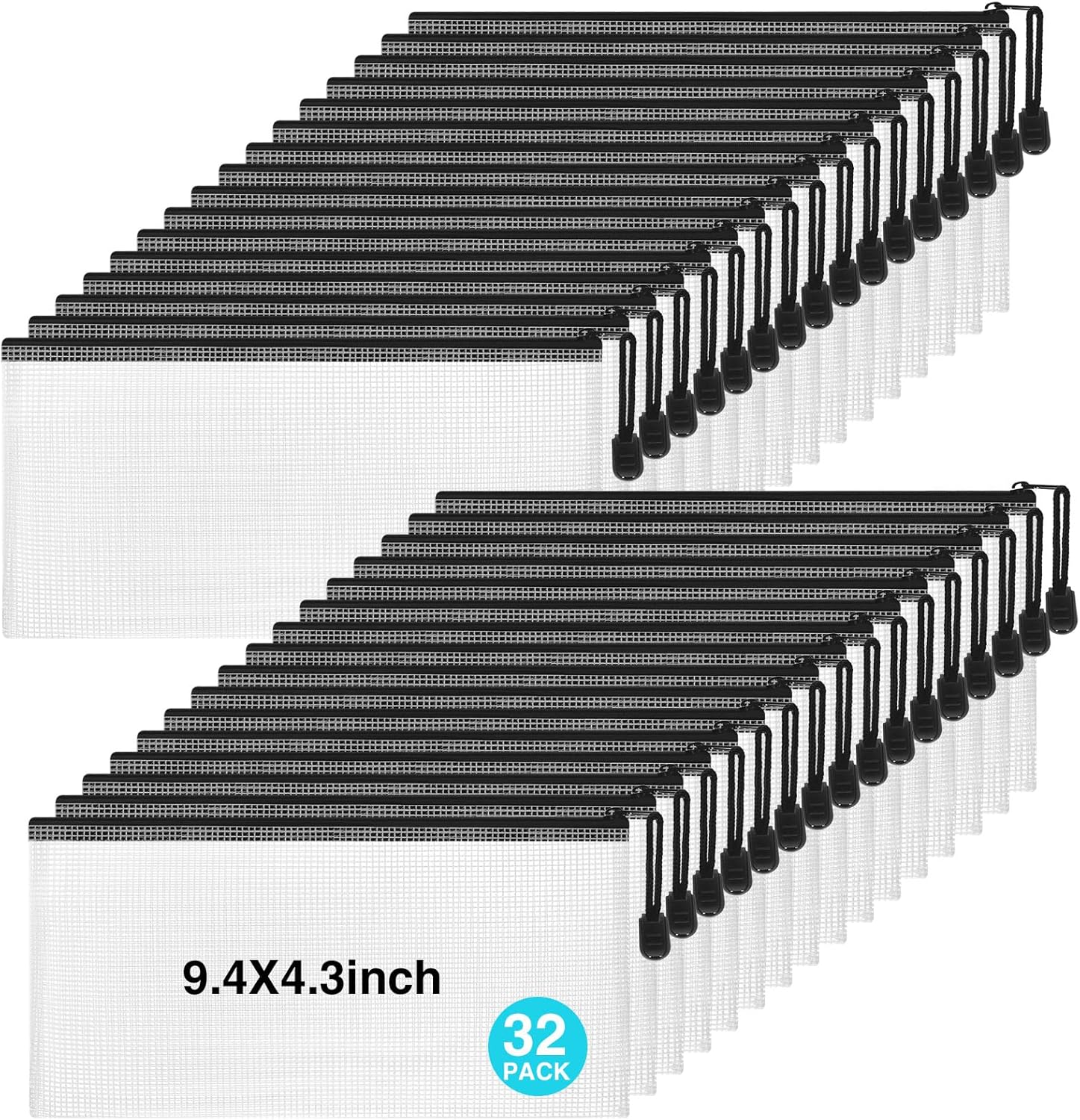 Jetec 32 Pcs Mesh Zipper Bags Toy Storage Bikini Organizer Bag Bolsas Para Guardar Trajes De Baño Waterproof Zipper Reusable Pouch Puzzle Multipurpose for Storage Office(Black,9.5 x 4.5 Inch)