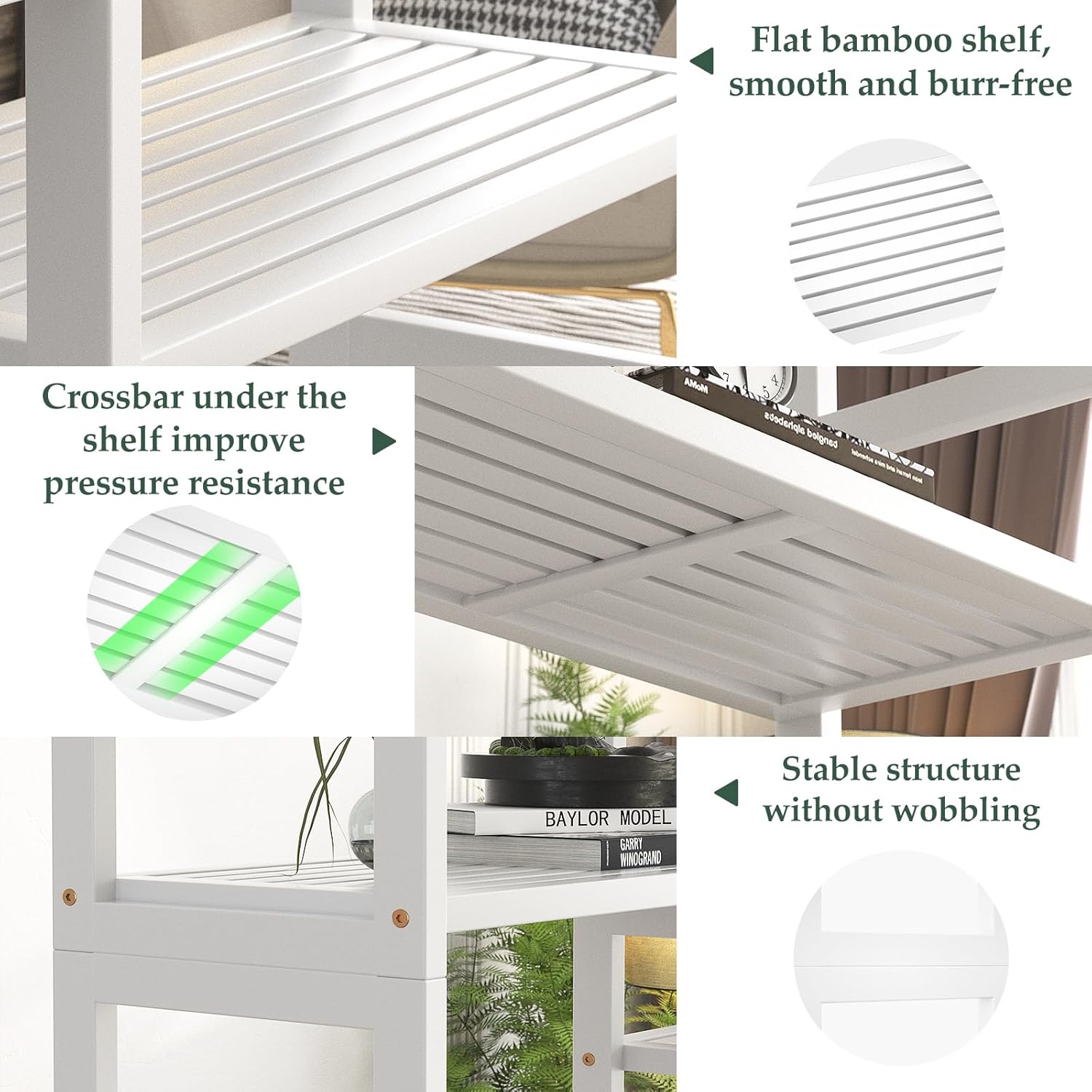 - Lightweight and Strong: The large bookshelf is made of superior bamboo, lightweight and durable. Thickened shelves and frames provide high load-bearing capacity. Varnished surface of the wide bookcase is smooth and burr-free. Natural wood aesthetic fits your decor in any room.