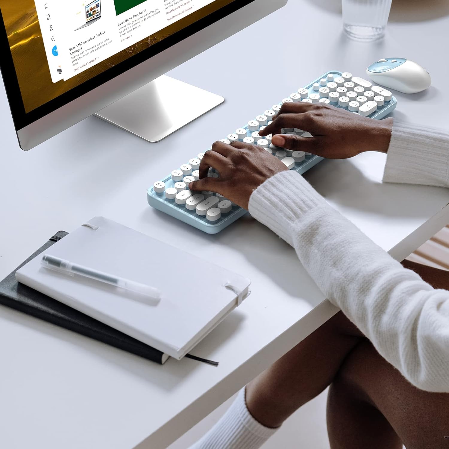 - 【Full-Size Wireless Keyboard】With white round keys, the retro cute keyboard and mouse make your be distinctive in the office and work full of fun.