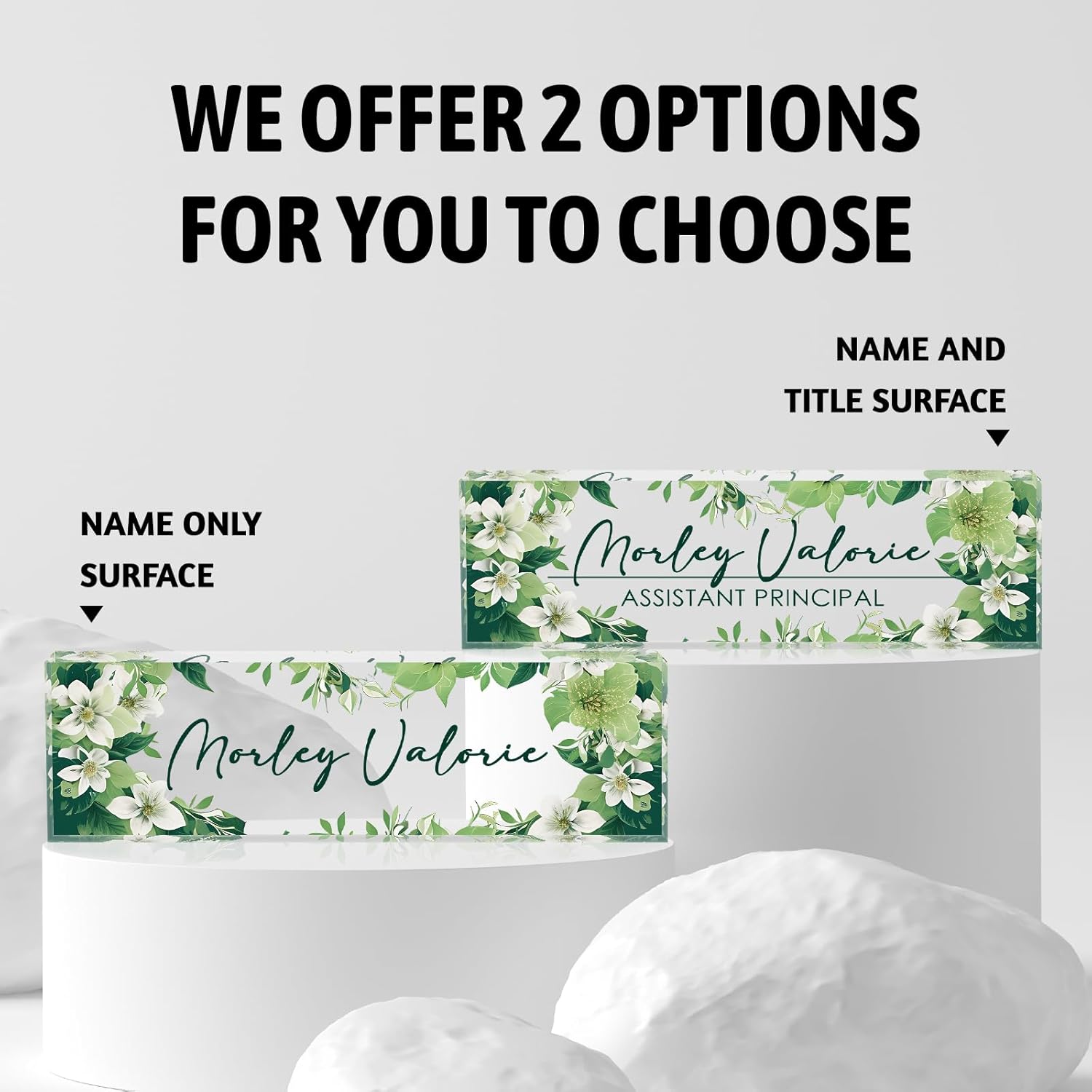 Custom Name Plate for Desk | Personalized Desk Name Plate | Personalized Boss Employee Appreciation Gifts | Acrylic Name Plate Office Desk Accessories (B-Green Flower)