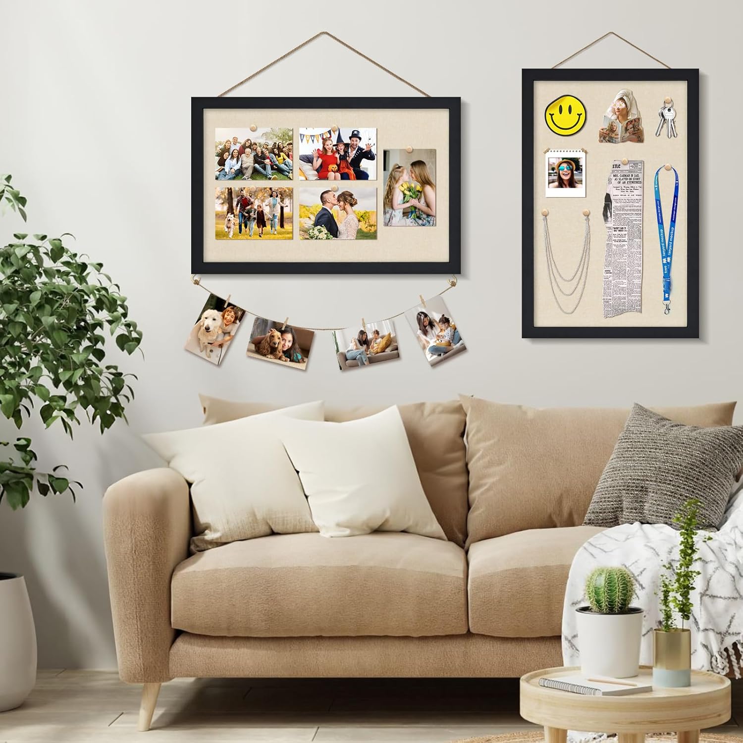 Egofine Cork Board Bulletin Board with Linen, 16x11 Wood Frame Pin Board Wall Decor, 2 Pack Cork Boards for Walls, Hanging Horizontal or Vertically for Office Home Decor School Kitchen, Black