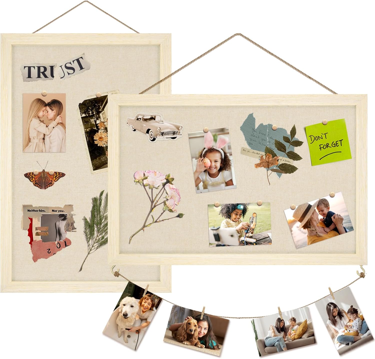 Egofine Cork Board Bulletin Board with Linen, 16x11 Wood Frame Pin Board Wall Decor, 2 Pack Cork Boards for Walls, Hanging Horizontal or Vertically for Office Home Decor School Kitchen, Natural Wood