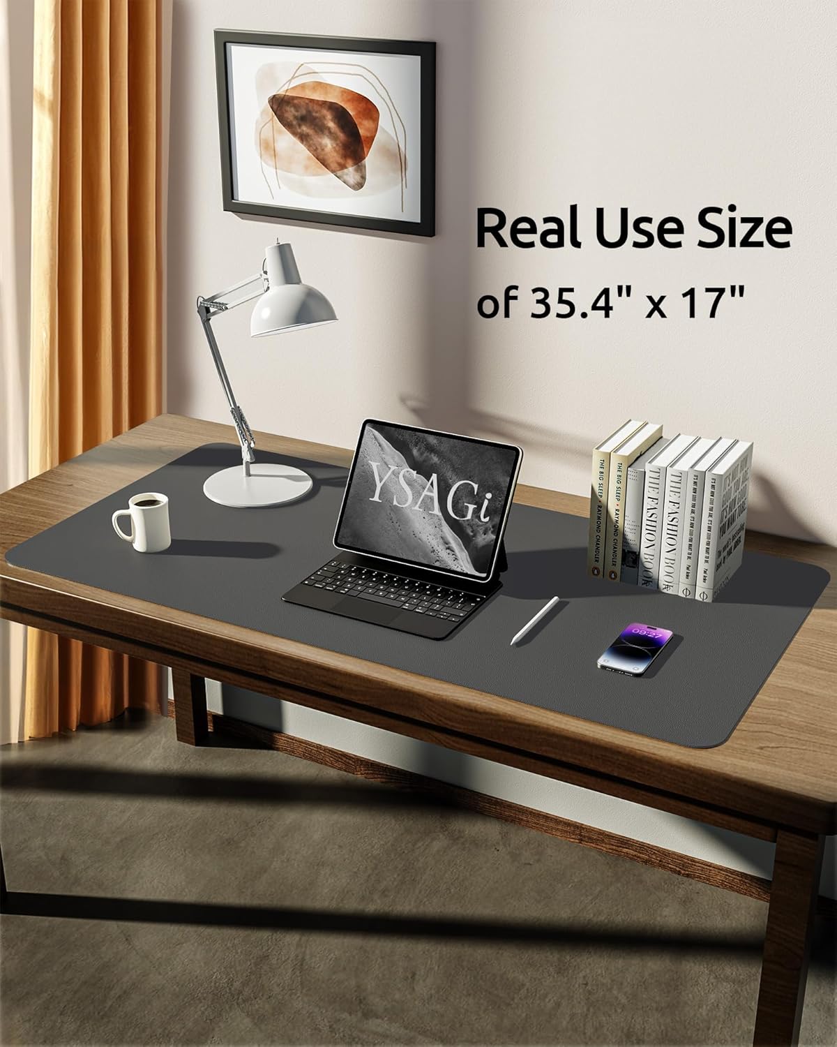 YSAGi Leather Desk Protector, Office Mat, Large Mouse Mat, Non-Slip PU Leather Blotter, Laptop Desk Pad, Waterproof Writing Pad for Office and Home (Dark Grey, 35.4" x 17")