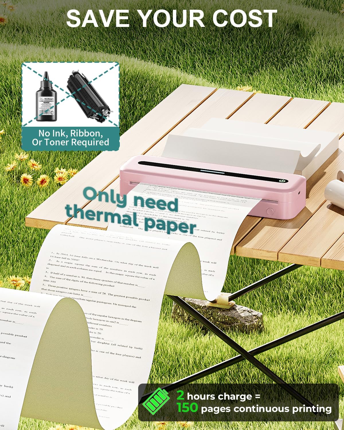 - SAVE YOUR COST AND TIME: COLORWING no ink printer don’t need ink, ribbon or toner $0 costing, only $0.14 thermal paper. More cleaner and more convenient, and does not jeopardize your human health. Small printer with large capacity, charging for 2 hours can print 300 sheets continuously.
