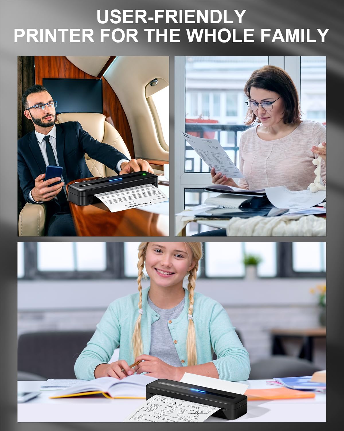 - FOR WHOLE FAMILY: Dad can take a print-anywhere small printer on business trips to improve productivity; Mom can print clear shopping lists from home printer and never forget what to buy again; Daughter can print reports; son can print personalized tattoos and more. Many more scenarios that can be used, it would make your life simpler, more organized and more interesting!