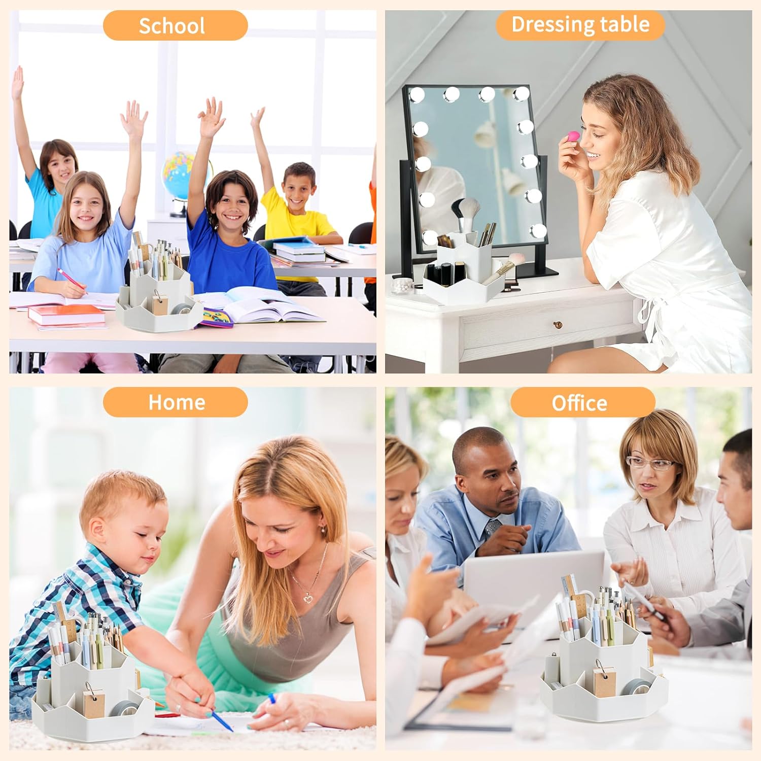 - ă360°Rotating Desktop OrganizerăThis desktop organizer can be turned up to 360-degree rotation to the left and right. You can rotate it to any angle to easily store or take out the things you want, it keeps your stationery supplies organized and easy to find, making you more productive