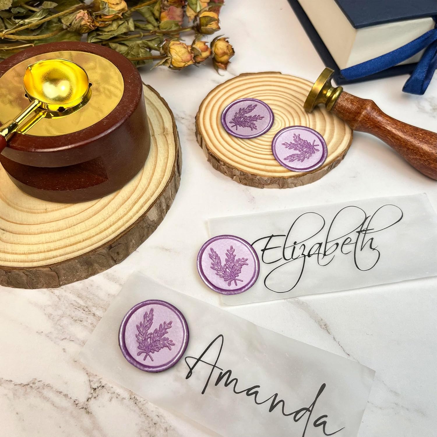 100Pcs Wax Seal Stickers Handmade Envelope Seals Self Adhesive Wax Stickers for Wedding Party Invitations, Envelope, Gift Wrap, Christmas(Rosemary Style, Lilac Purple)