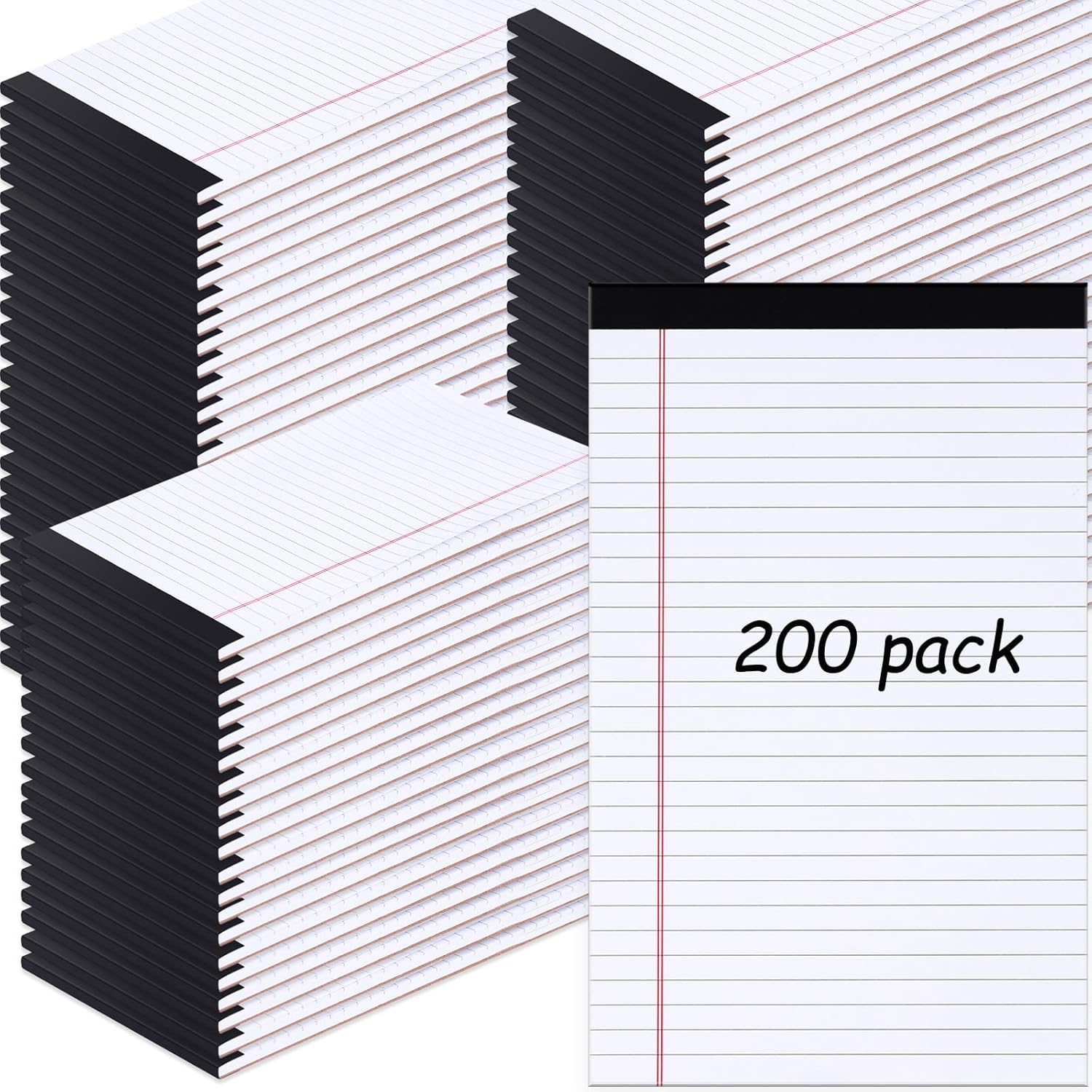Gueevin 200 Pcs Legal Pads 5x8 Inch Note Pads Lined Small Notepads Bulk Wide Ruled Writing Paper 5 x 8 Mini Notebook for School, College, Office, Classroom Supplies, 40 Sheets (White)