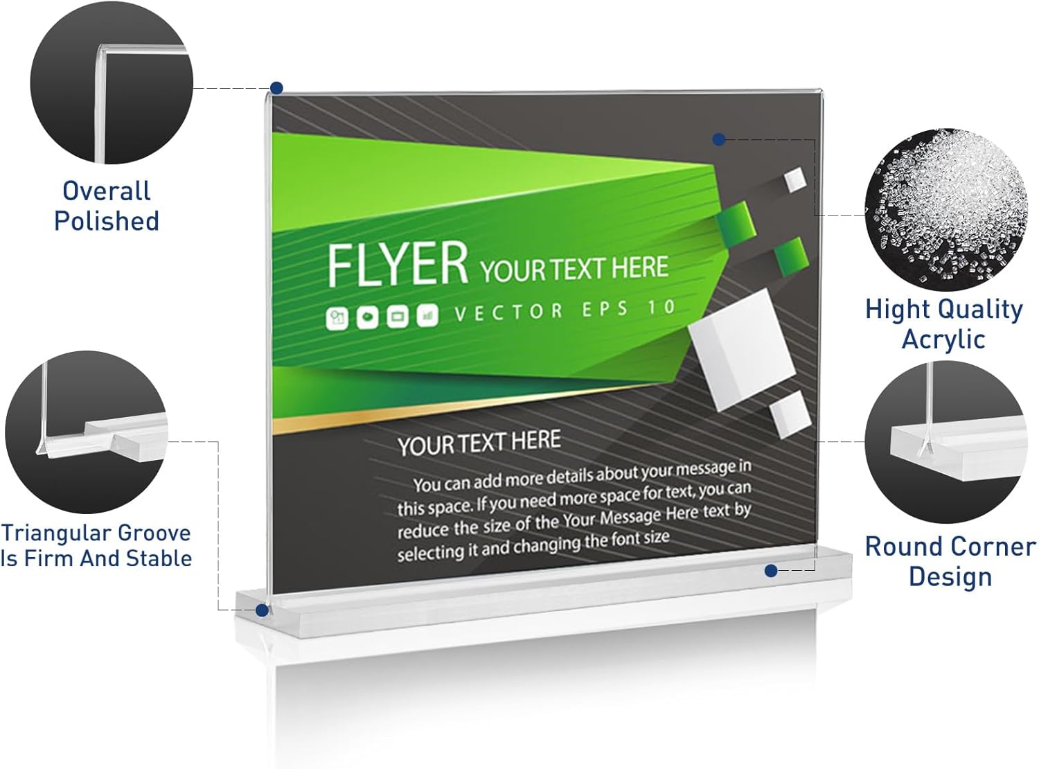 Acrylic Sign Holder 11x8.5 Horizontal Double-Sided Plastic Display Sign Holder for Table Menu, Flyer, Office Acrylic Sign Holer 6 Pack