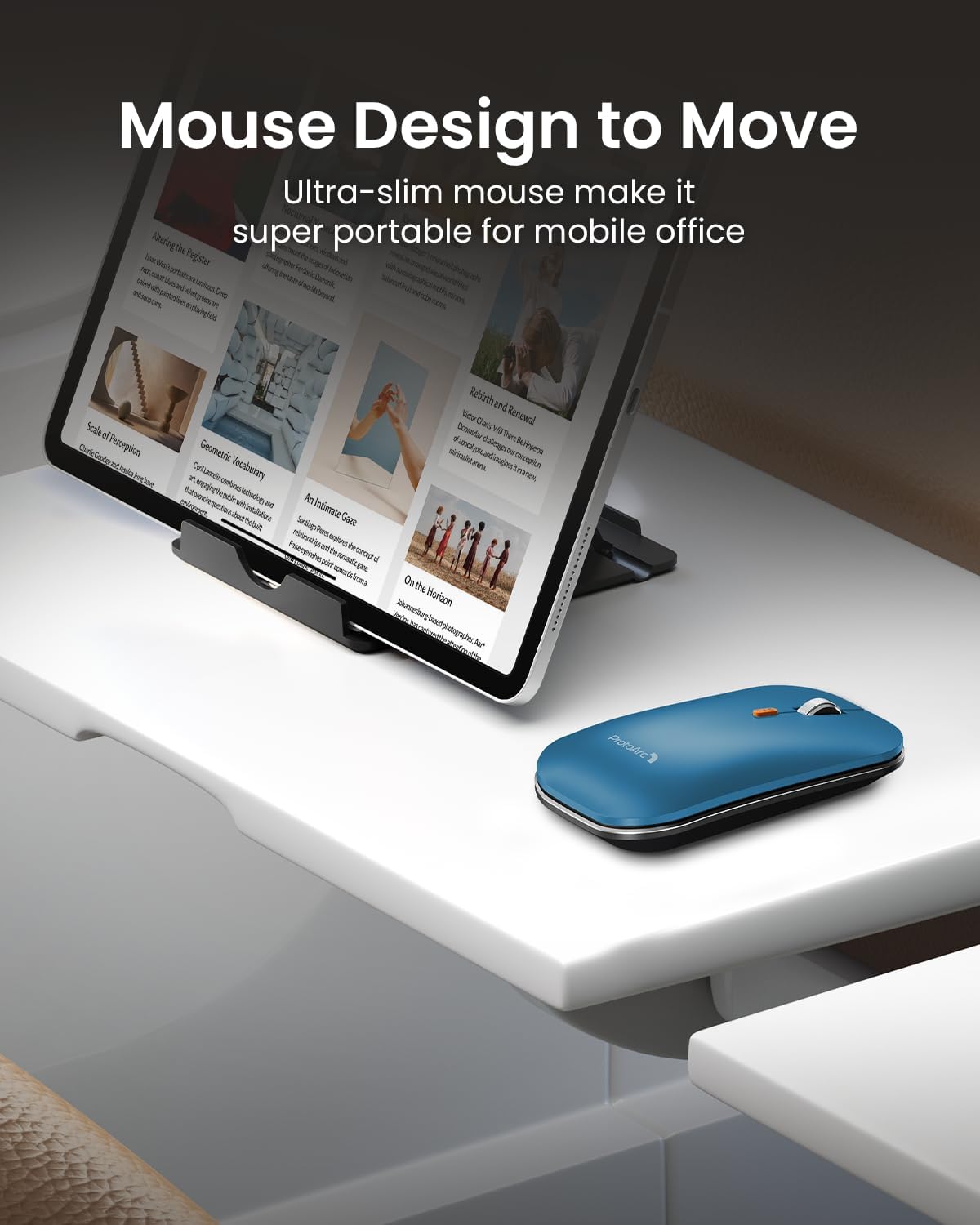 - Precision Ultra-Slim Mouse: Designed for professionals on the move, this portable mouse delivers pro-grade precision with 3 adjustable DPI modes (1000/1600/2400) – adapt to any task instantly. Its slim profile takes up minimal space, slipping into laptop sleeves or pockets, while 25dB micro-switches prevent "click fatigue" in shared workspaces