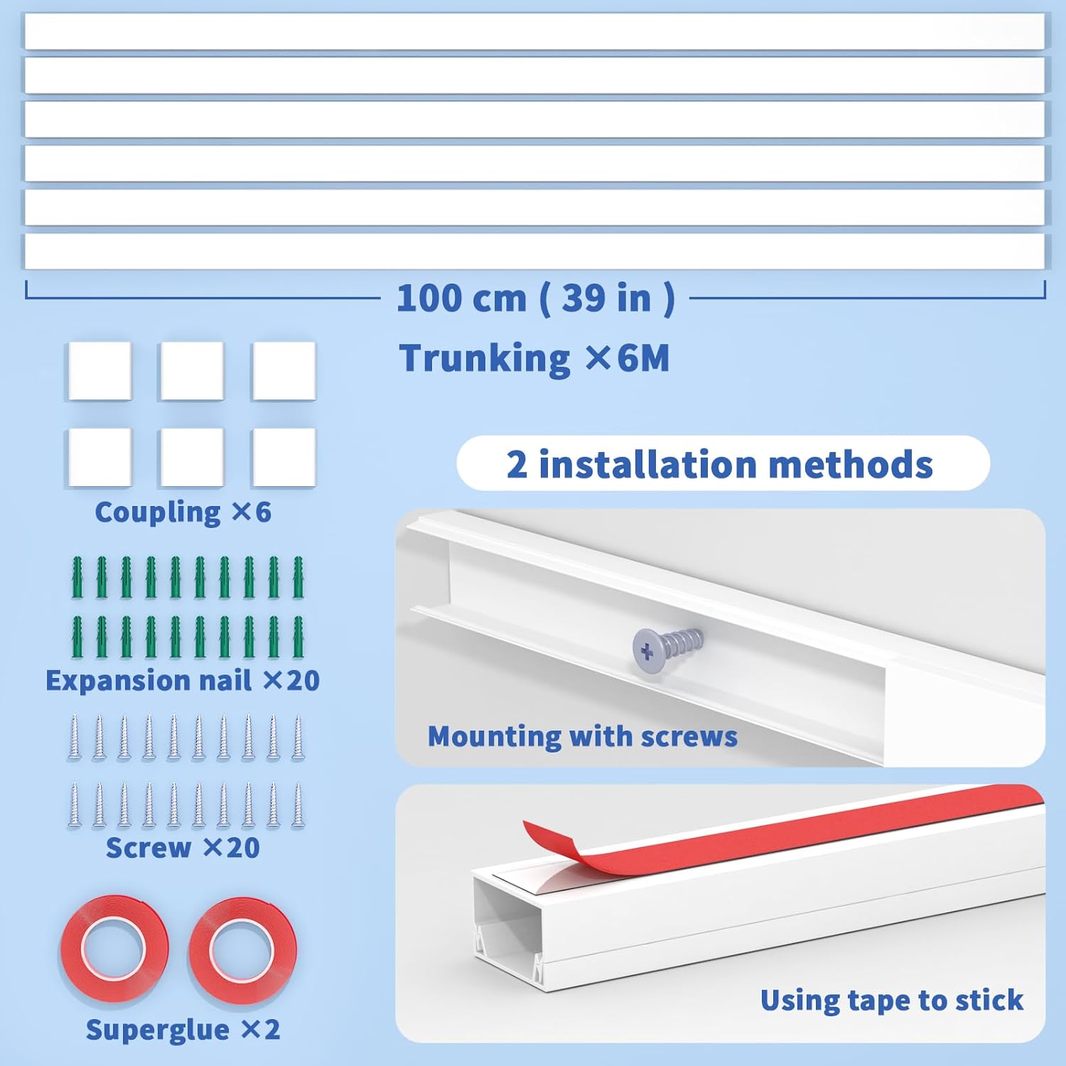 - 【EASY TO INSTALL, SAFE, BEAUTIFUL.】 Longer wire channel to avoid multiple connections due to short wire channels, with double-sided adhesive, plastic cord covers, easy to cut, flame retardant, and safe, hide the messy meandering wire channels in the wire channels and paint the closest color to the color of the wall so that it blends perfectly into the environment. ( For uneven walls, please match the nails and reinforce as needed)