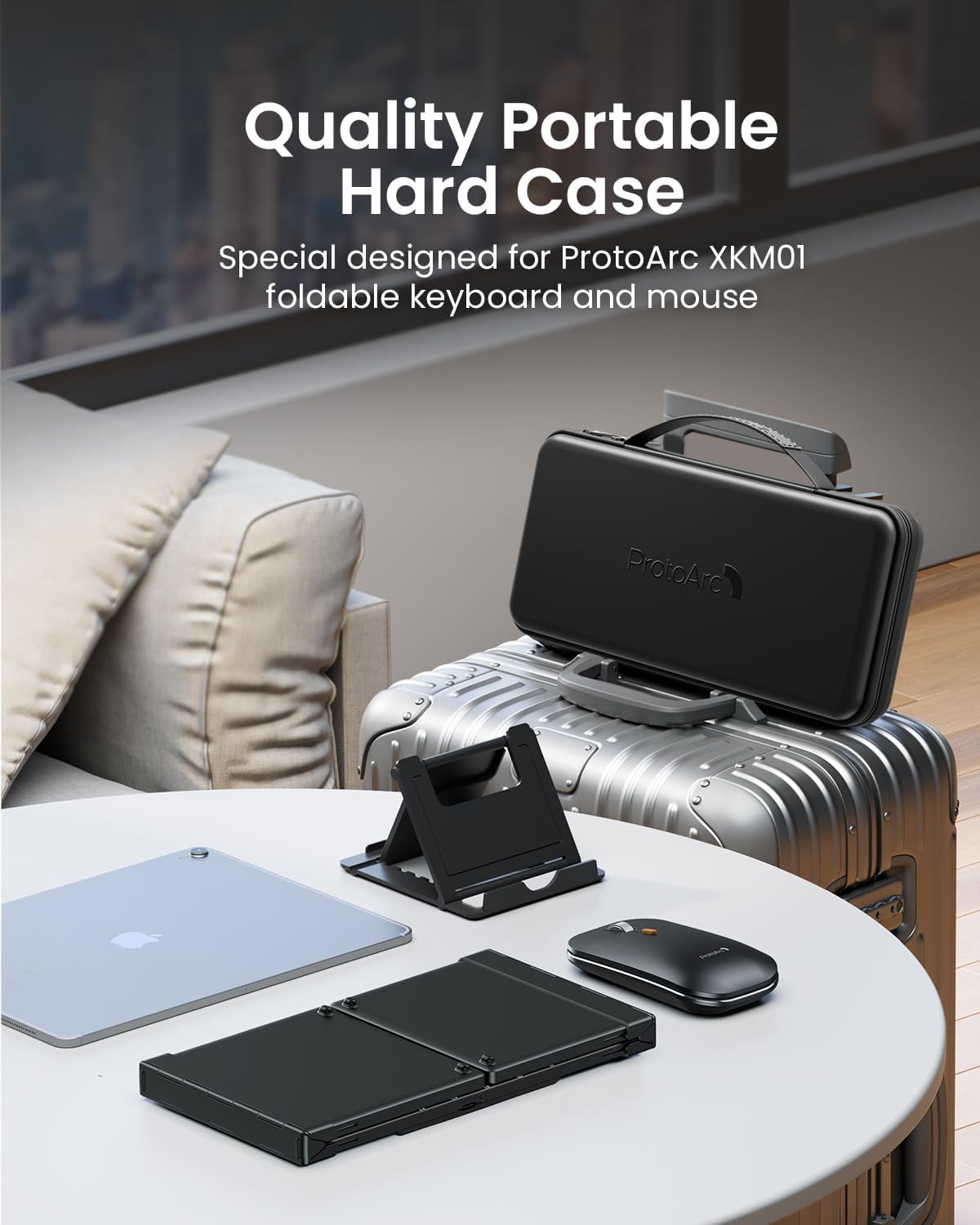- Travel-Ready All-in-One Kit: Includes a carrying hard case (12 x 5.55 x 1.6 in) with a foldable stand for 4-11” iPads/tablets. Internal aluminum hinges survive 10,000+ folds, tougher for frequent trips. Unfold and work instantly, zero setup time