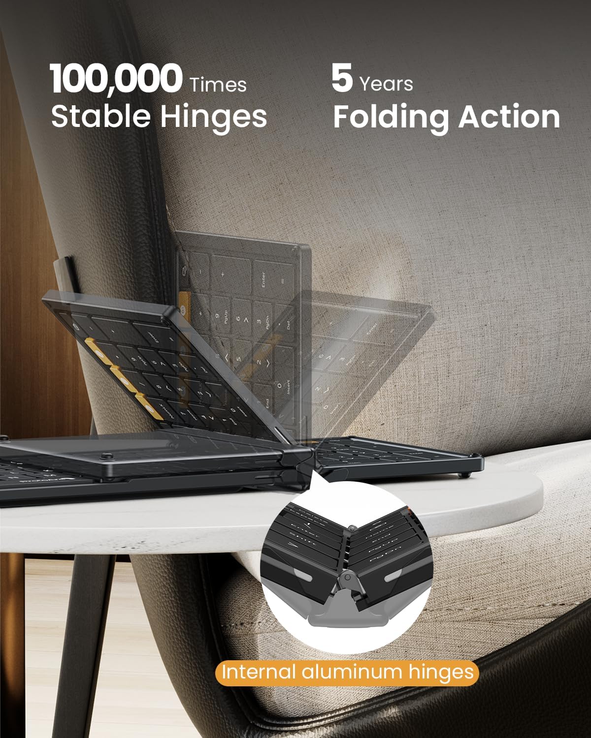 - Work Quietly Anywhere: Our foldable bluetooth keyboard features whisper-quiet scissor switches and low-profile keys, paired with a noise-reducing mouse to deliver library-level silence. Perfect for meetings, coffee shops, and flights - enhances focus by 50% without disturbing others