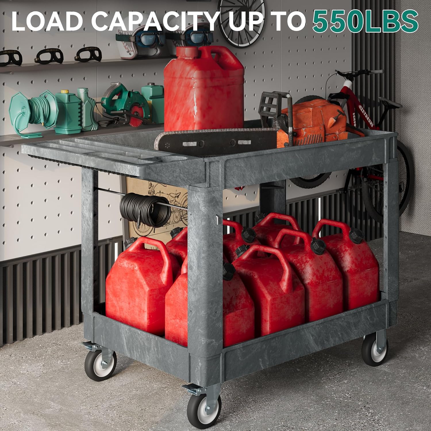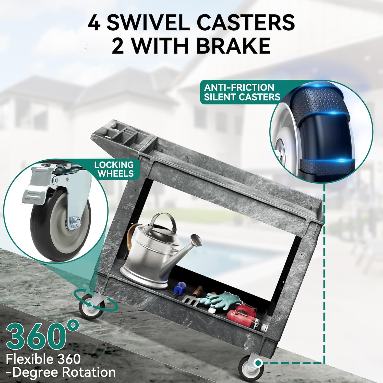 YITAHOME Utility Cart on Wheels, 550 lbs Service Cart 45 x 25 Inch Rolling Work Carts with Wheels, 2 Shelf Heavy Duty Plastic Cart Suitable for Warehouse, Garage, School & Office, Cleaning, Gray