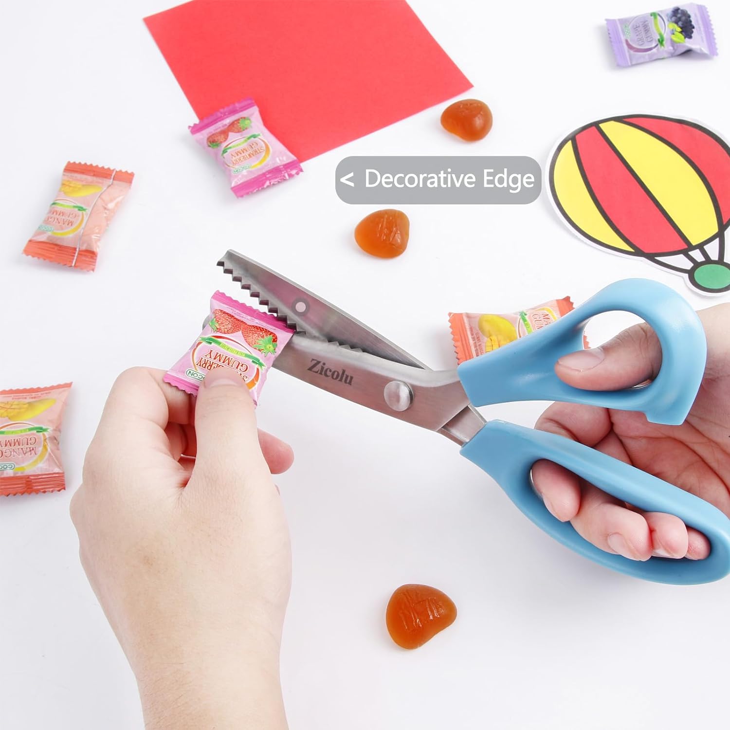 - Craft scissors decorative edge: Decorative scissors for paper crafts, They are utilized for cutting various types of paper, such as colored paper, cardstock, as well as other materials like fabric, and thick cardboard. The squiggly cutting edges add special decorative effects to crafts, making them ideal for creating cards, gift tags, decorative borders, handmade invitations, and decorations. They feature zigzag edges and borders, perfect for both kids and adults' craft activities. Whether at home or in school, they make it easy to create shapes and ornaments with ease.