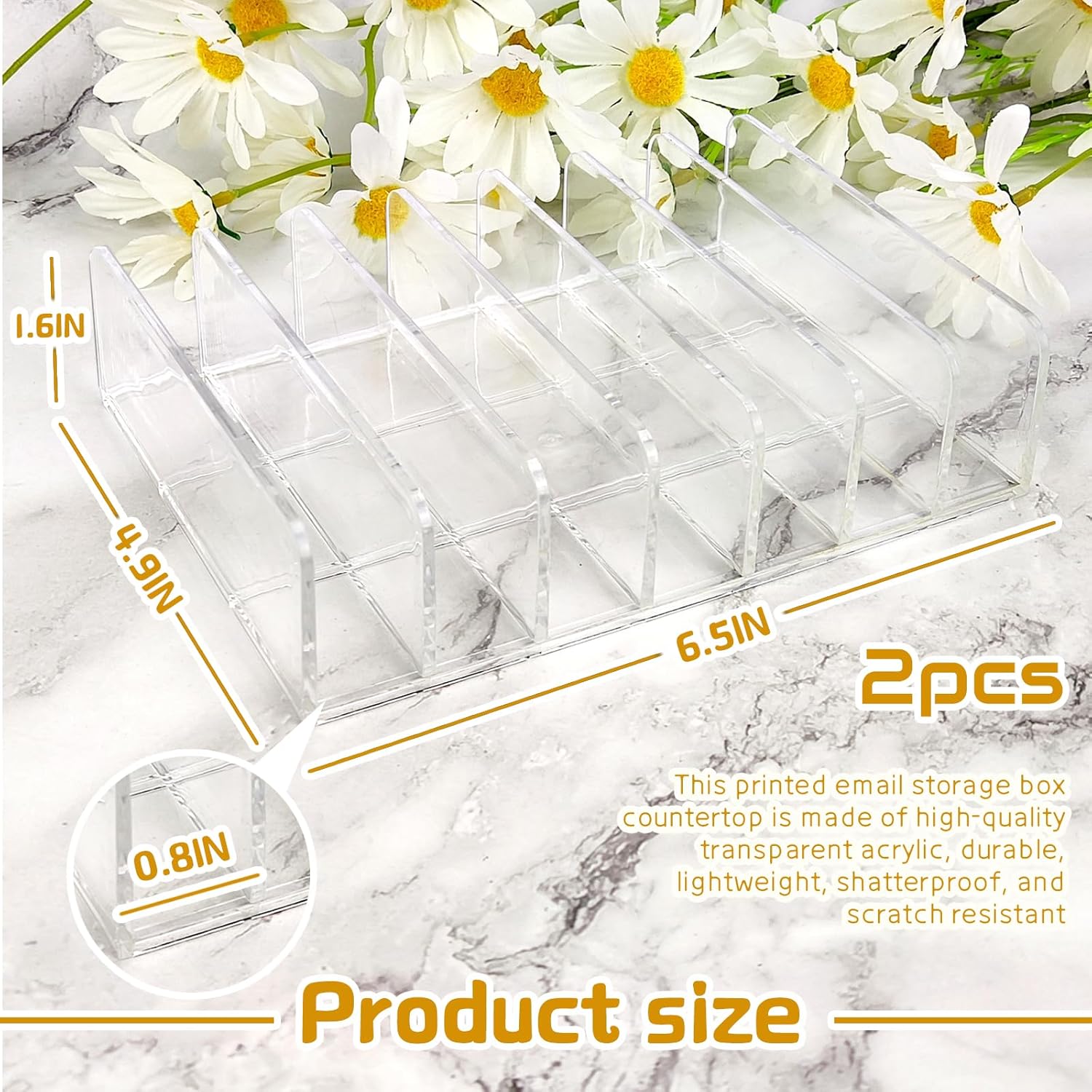 LUOKER Acrylic Mail Organizer - 2 Pcs CD Holder With 7 Compartments, 7 x 5 x 1.57 Transparent Countertop Envelope Organizer for Office, Home Desk