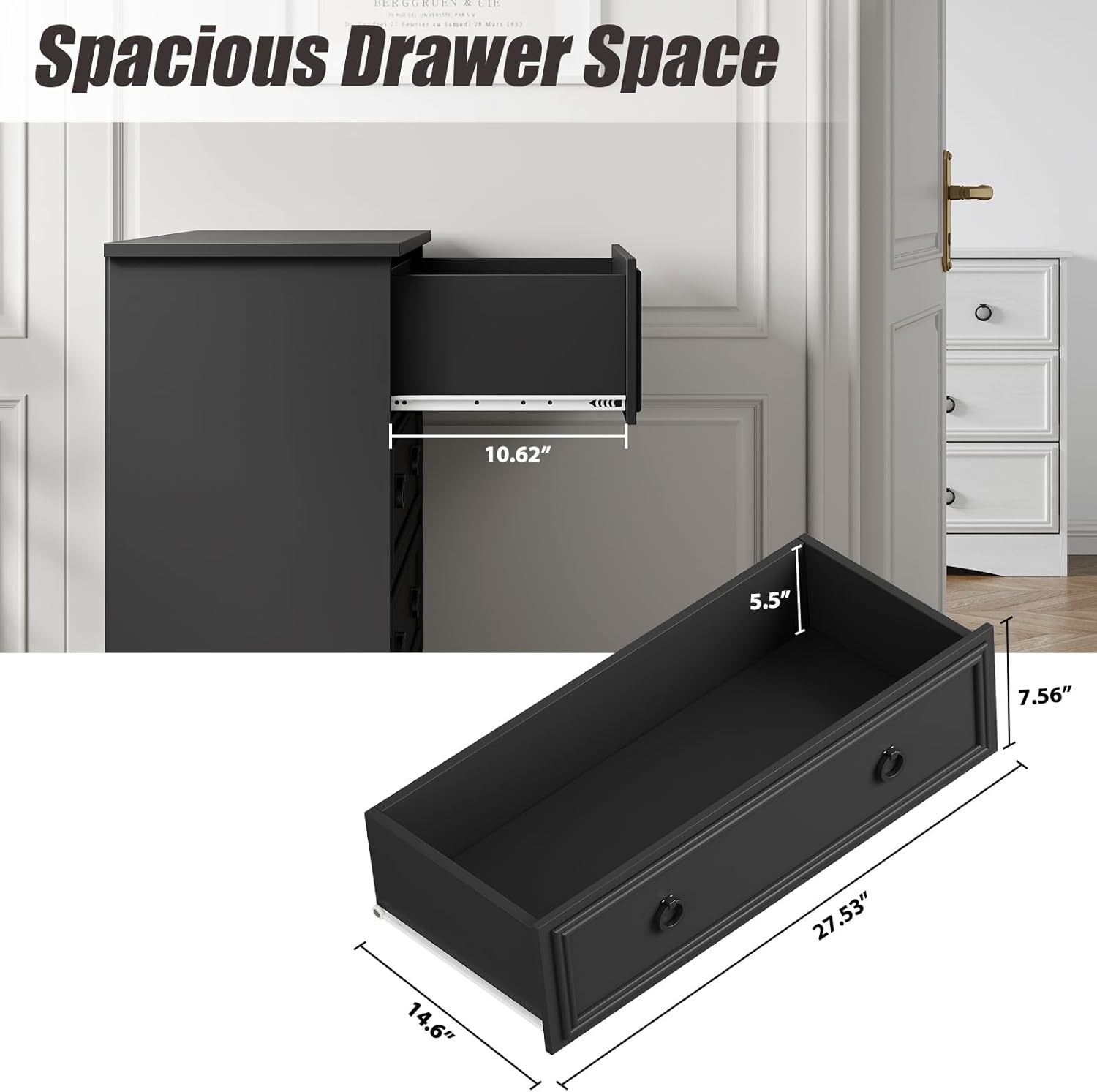 LGHM Modern 4 Drawer Dresser, Tall Dressers for Bedroom, Chest of Drawers Closet Organizers and Storage for Clothes - Easy Pull Handle, Textured Borders Drawers for Living Room, Hallway, Black