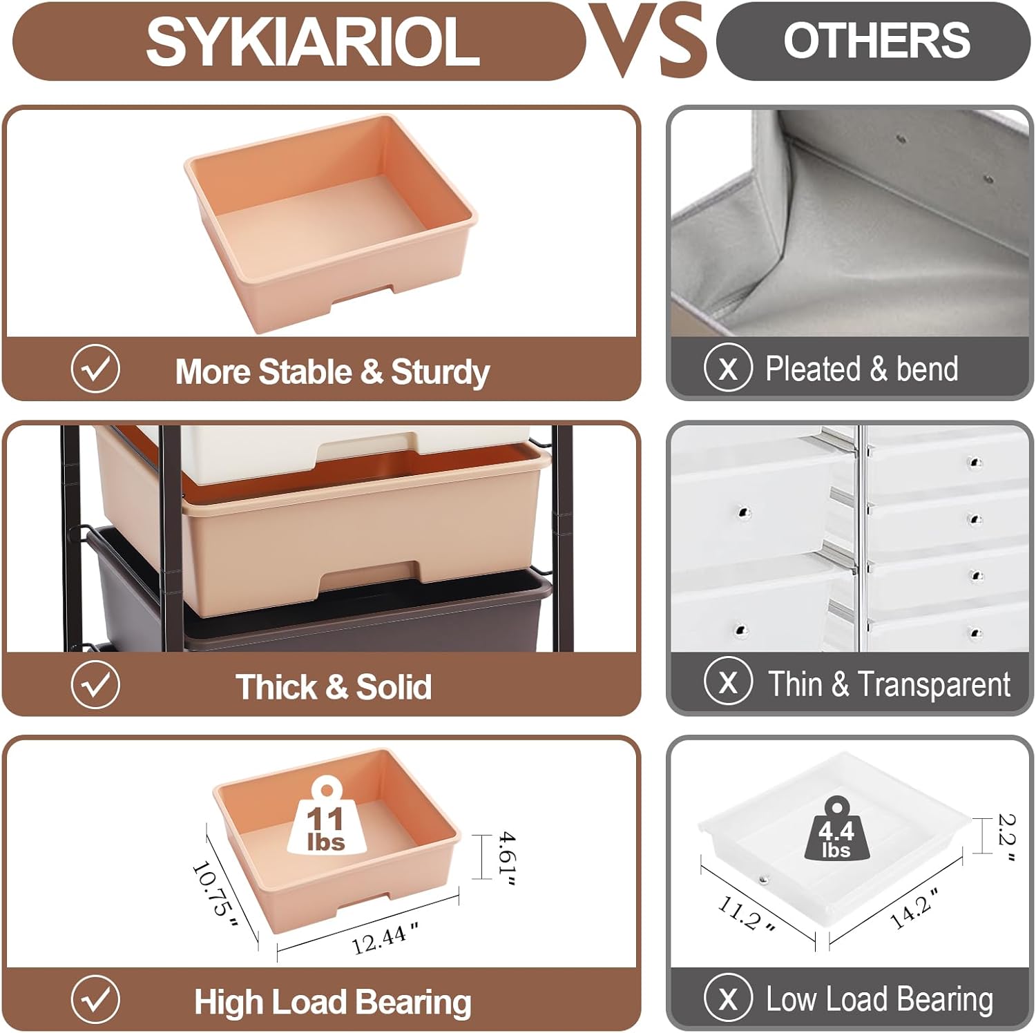 - FLEXIBILITY MOBILITY & LOCKABLE WHEELS: Storage cart with drawers with four universal wheels can swivel 360 degree and help you move it easily, you can effortlessly move a fully-loaded cart with a single hand anywhere.Locking wheels provide maneuverability and stability when needed. Smooth wheels, scratches and noise during movement can be effectively avoided.