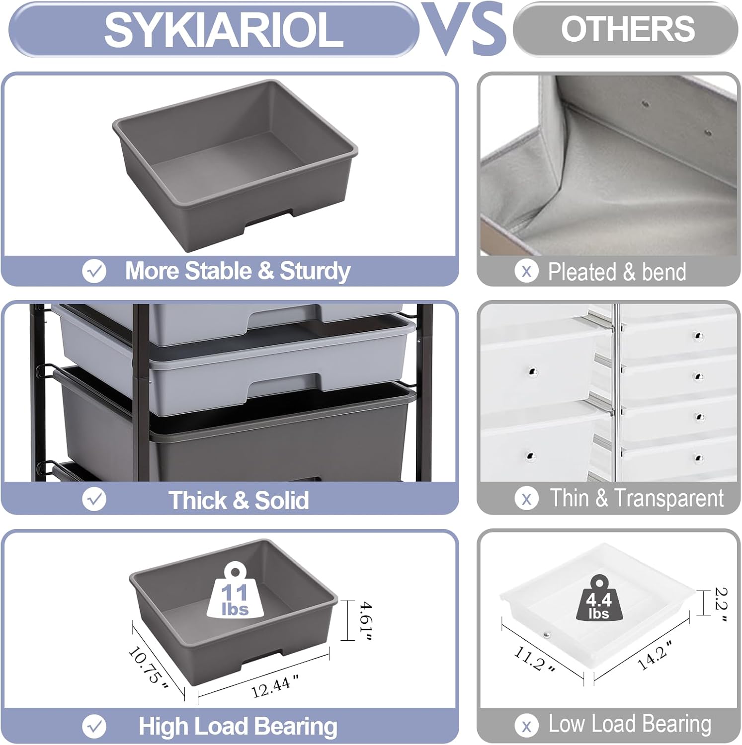 - FLEXIBILITY MOBILITY & LOCKABLE WHEELS: Storage cart with drawers with four universal wheels can swivel 360 degree and help you move it easily, you can effortlessly move a fully-loaded cart with a single hand anywhere.Locking wheels provide maneuverability and stability when needed. Smooth wheels, scratches and noise during movement can be effectively avoided.