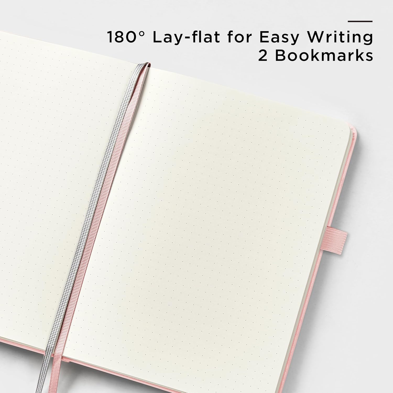 - 180° LAY-FLAT DESIGN: The lay-flat design allows for easy writing and ensures that you can utilize every page efficiently. Journaling, note-taking and planning has never been easier! 2 Bookmarks to help you find important content faster