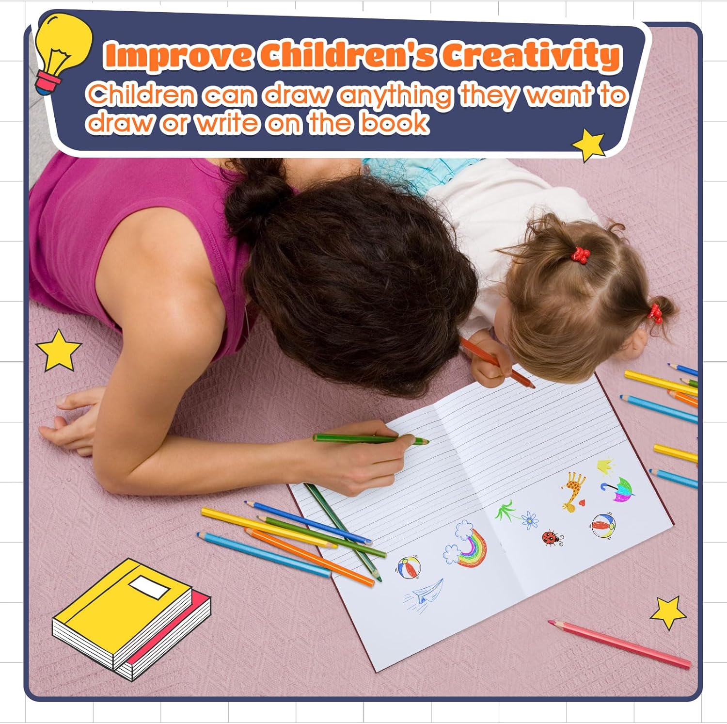 - Encourages Creativity: our thoughtfully designed primary journals come with half page lines for writing and half page blank spaces for drawing; This layout stimulates children's writing, drawing, and storytelling skills, fostering their creativity while enhancing learning