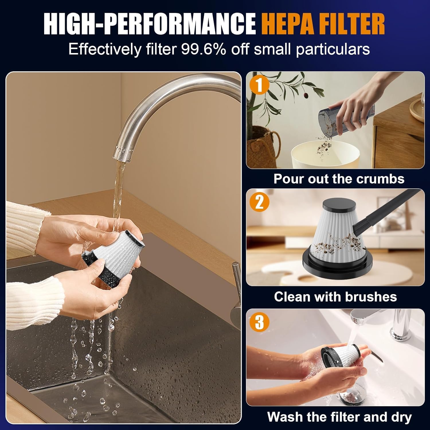 - Special Feature : Cordless, HEPA, Lightweight, Portable, Washable Filter