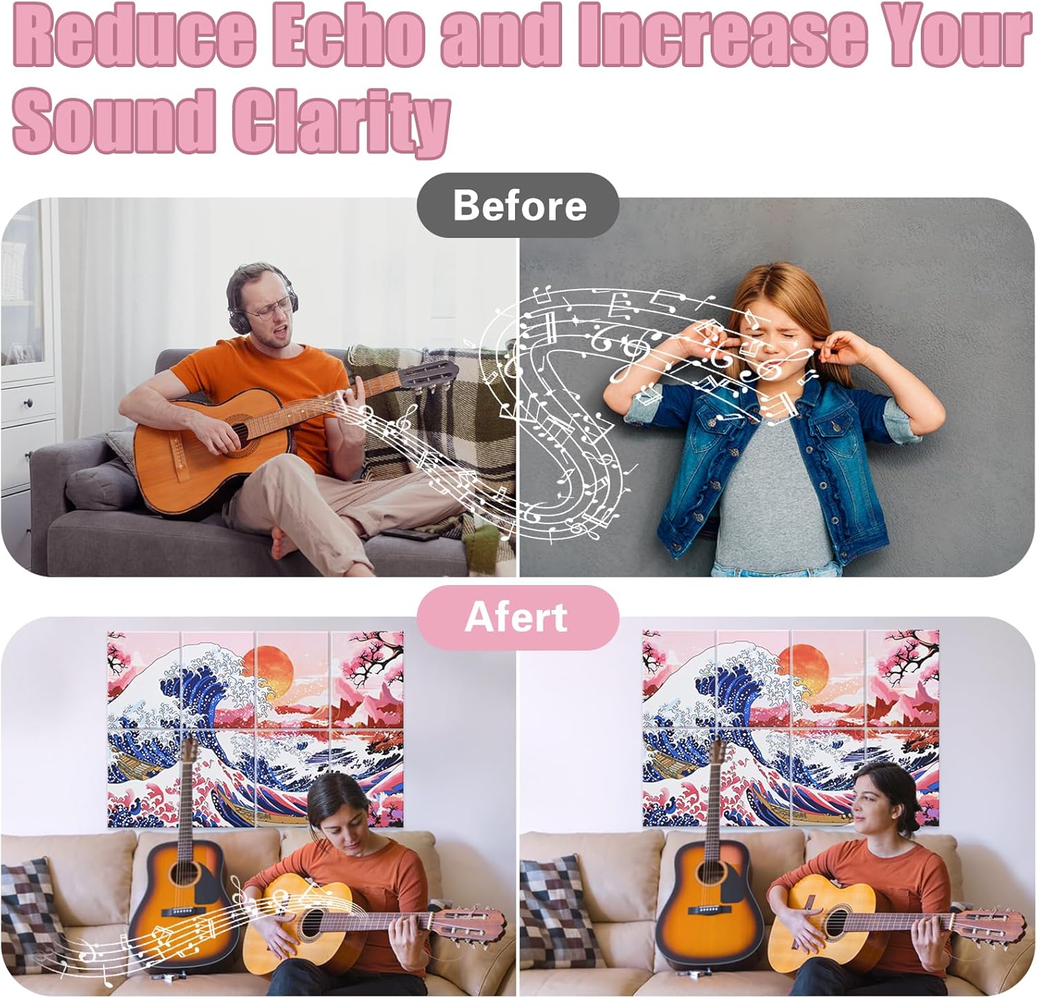 - EFFICIENT ACOUSTIC TREATMENT: Our art acoustic panels are 9.4 lb/ft3 density, noise reduction coefficient: >0.92 and absorption coefficient: 0.8, provide exceptional sound absorption, minimizing reverberations and echoes, improve sound effects and speech intelligibility.