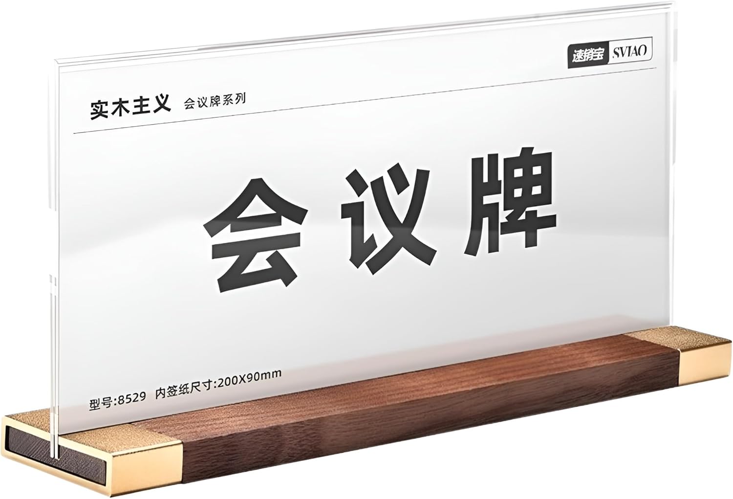Desk Name Plate Holder, Acrylic Sign Holder for Table Display, Wood Base Double Sided Nameplate 200*90MM/7.87x3.54 inches